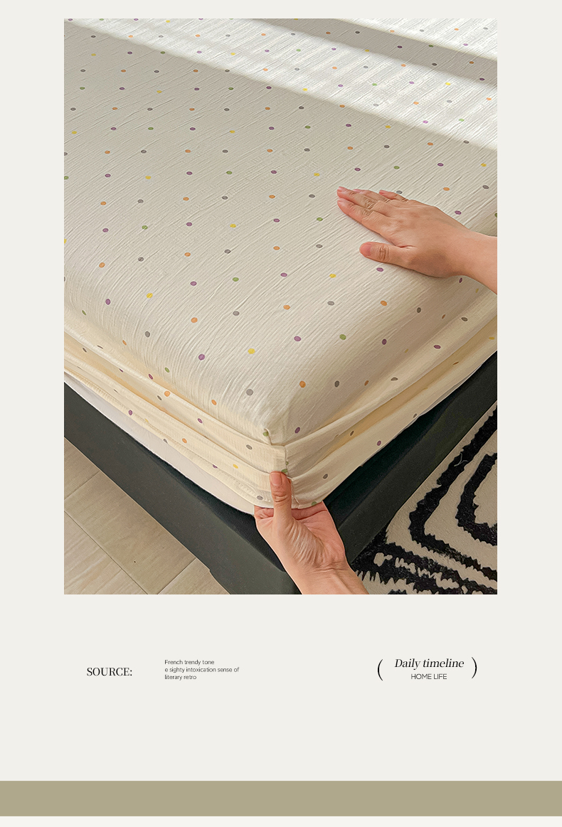 当前位置: 91家纺网 > 商品网购 > 床上用品 > 床笠 > 韩巢家纺 2026新款三层纱单床笠热销款防滑床笠单件 彩波波