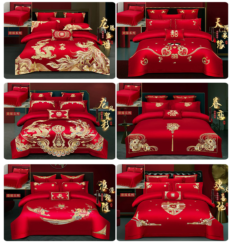 (总)优姿家纺 2026新款全棉长绒棉纯棉婚庆床裙高端四件套,子孙满堂,欢天喜地,家家有喜,嫁给爱情,眷恋,浪漫相随,良辰相伴,龙凤贺彩,龙凤喜缘,龙华凤贵,龙腾盛世,天降良缘,喜嫁,喜乐,喜意连连,新婚快乐,幸福美满,早生贵子