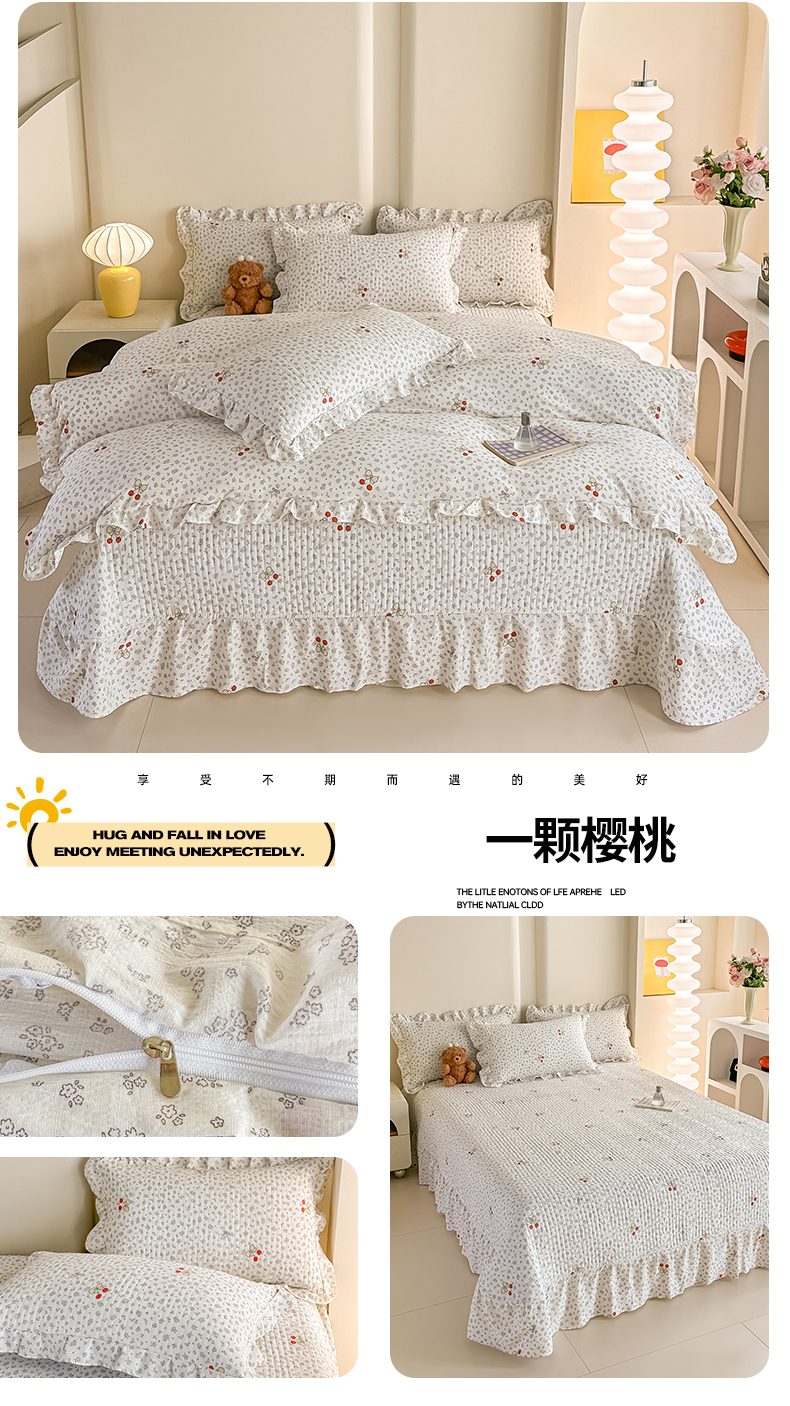 当前位置: 91家纺网 > 商品网购 > 床品套件 > 四件套 > 双层纱四件套 > 梓之赫 2026春夏新款A类云感木棉双层纱夹棉床盖四件套 春风拂梦