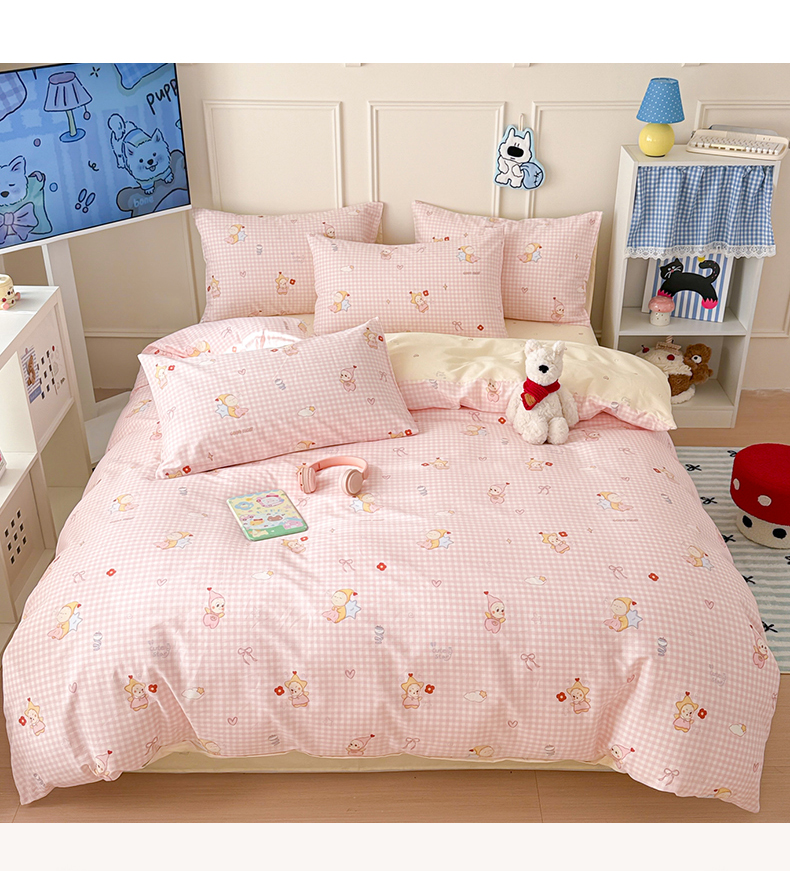 商品名称:简宜家居(朝初家纺) 2026新款全棉12868卡通印花四件套大耳朵兔兔系列 粉格甜崽