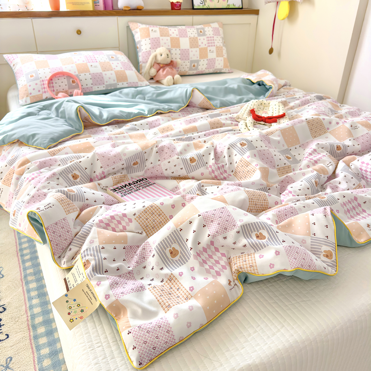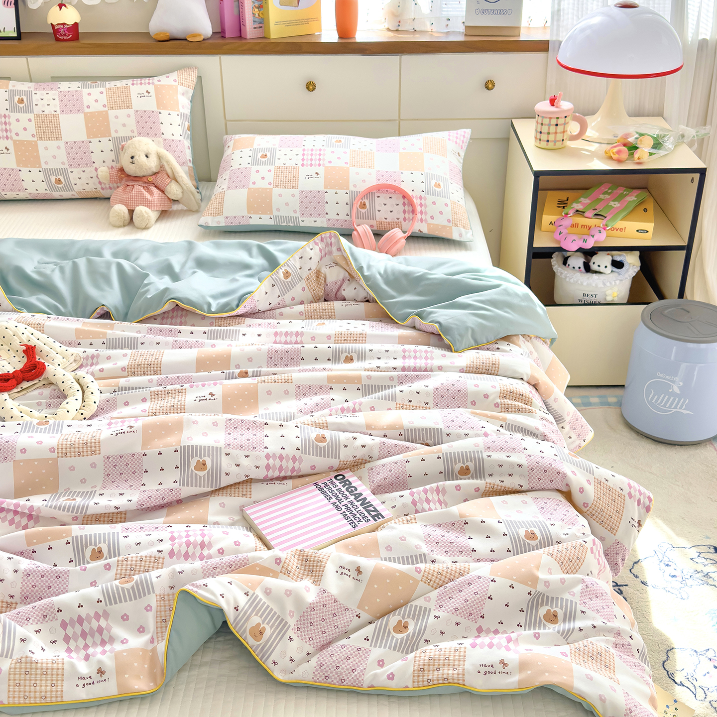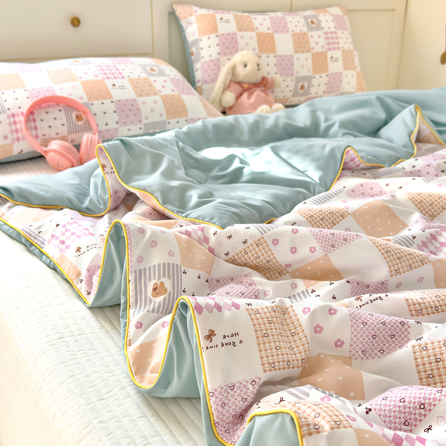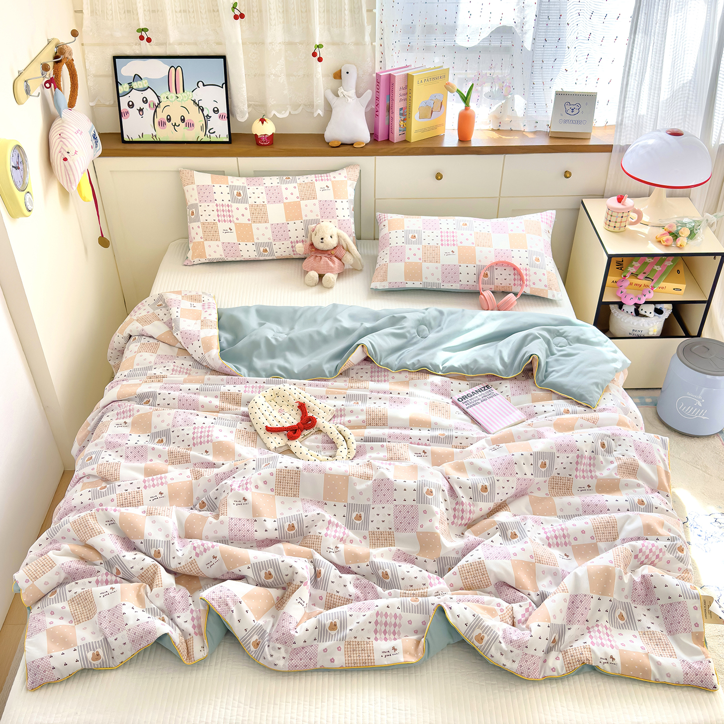 金蕊阁 2025新款A类水洗双层纱夏被大豆夏被夏凉被空调被拼格小兔