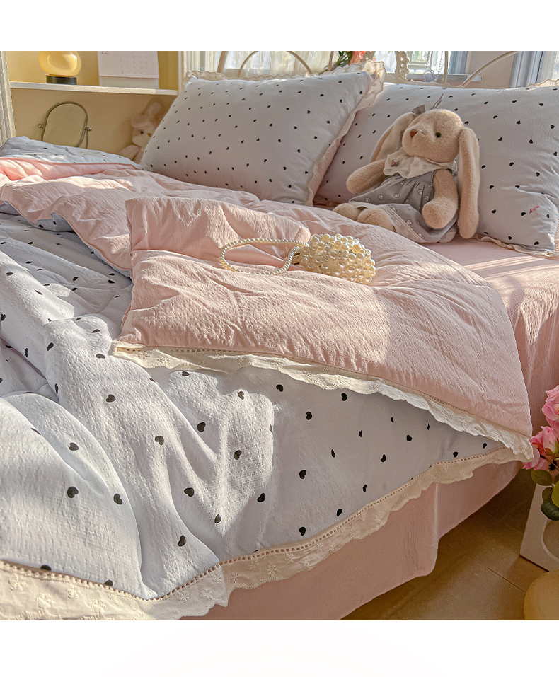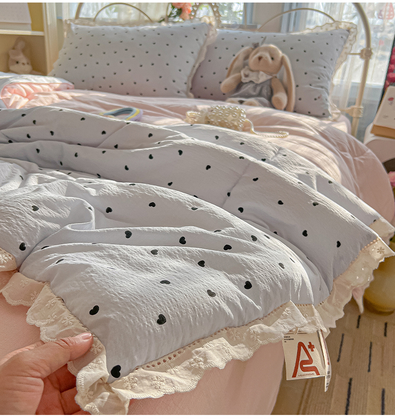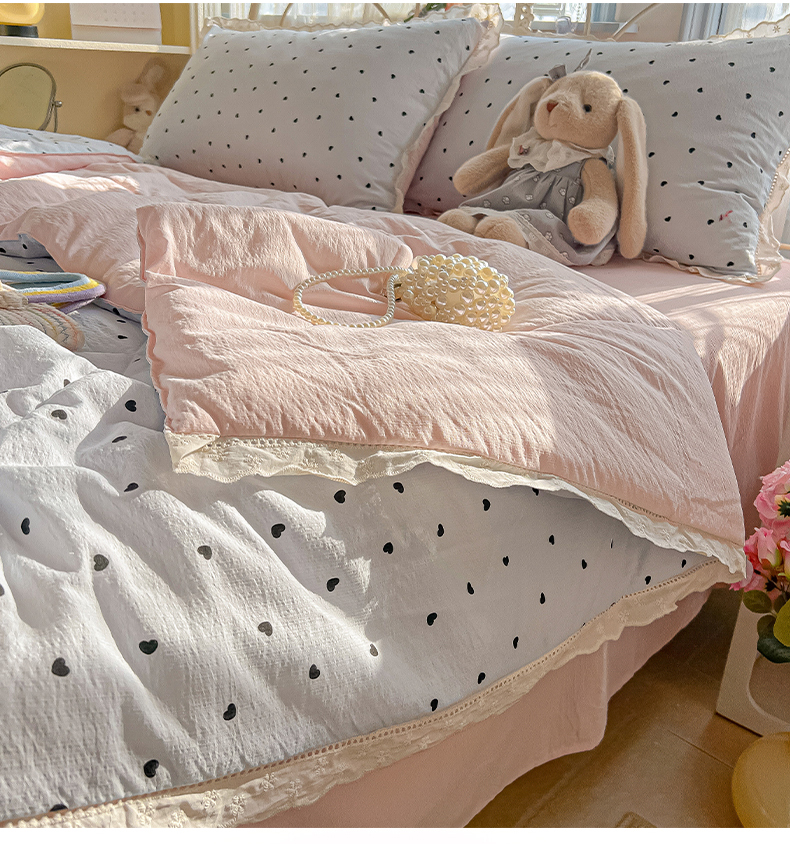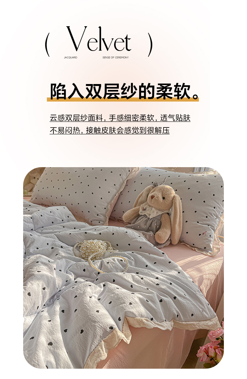 (总)罗亿家纺 2026新款全棉镂空花边云感双层纱夏被四件套,春日限定,点点小狗,海盐甜心,韩范小猫,赫本小姐,花花腊肠狗,花漾kitty,花与兔,简夏,蓝蓝小奶狗,蓝萱,蔷薇絮,萄气满满,小粉兔,小猫数星星,星星兔,薰衣草,枝蔓,kitty甜梦窝,组合图仅展示
