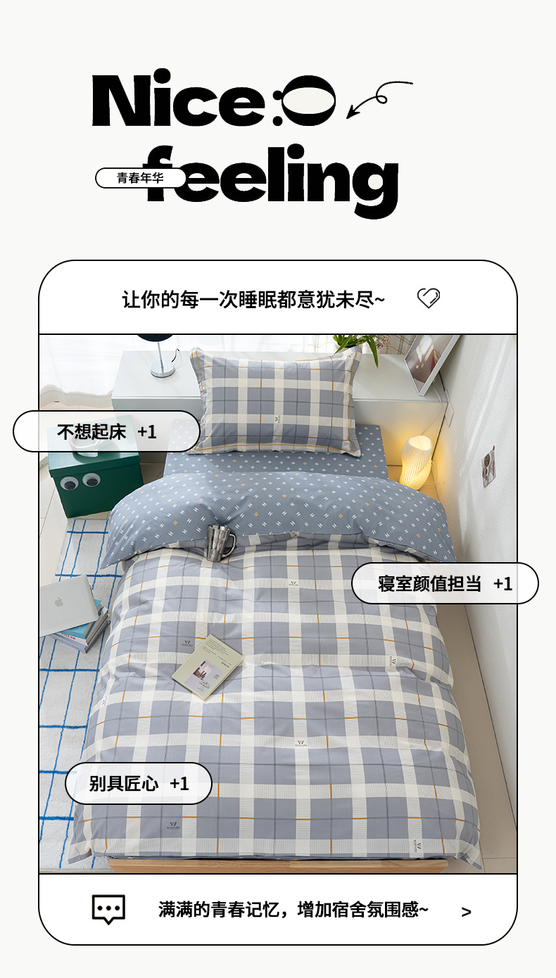 (总)良佐生活 2026新款A类铂金精梳全棉学生三件套,初遇-灰,贝里斯,云川,柚子小西,溪言-兰,格纹萌熊,溪言-粉,青格萌喵,莉亚,初遇-绿