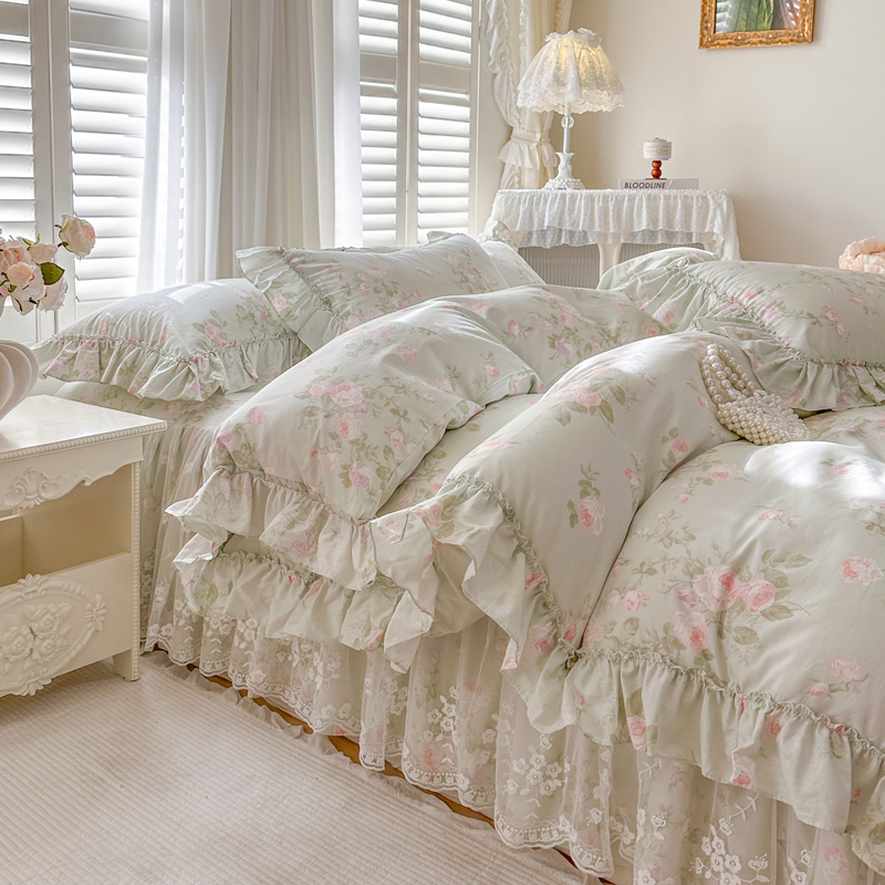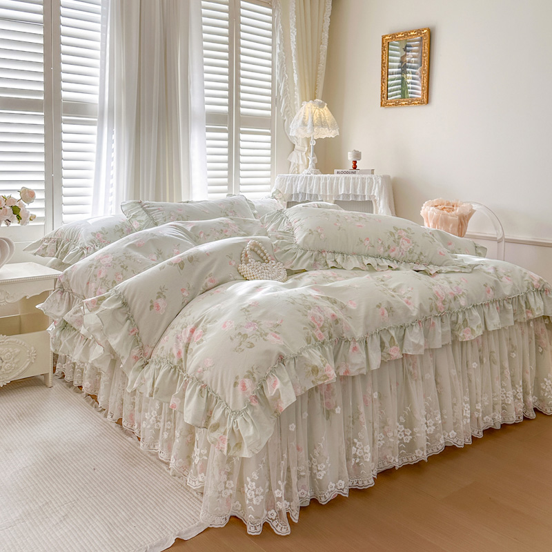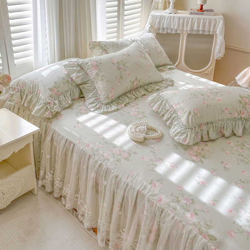 • 91家纺网 家纺一手货源 找家纺 (总)瑞宝 2025新款全棉花边床裙三件套系列-落日甜茶,落日甜茶-梦幻玉,落日甜茶-奶油白,落日甜茶-青柠绿,落日甜茶-甜紫