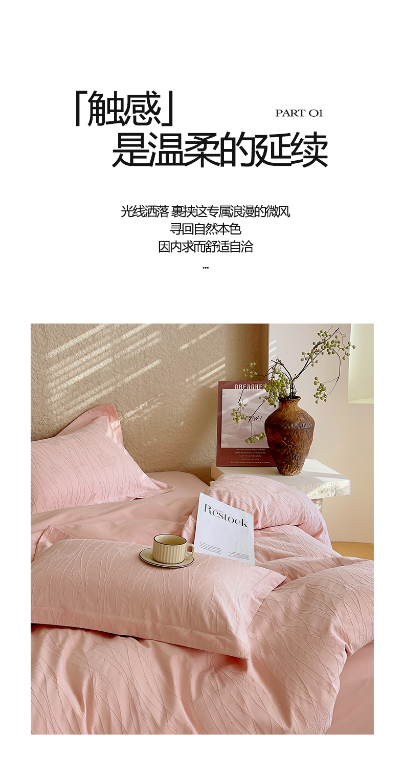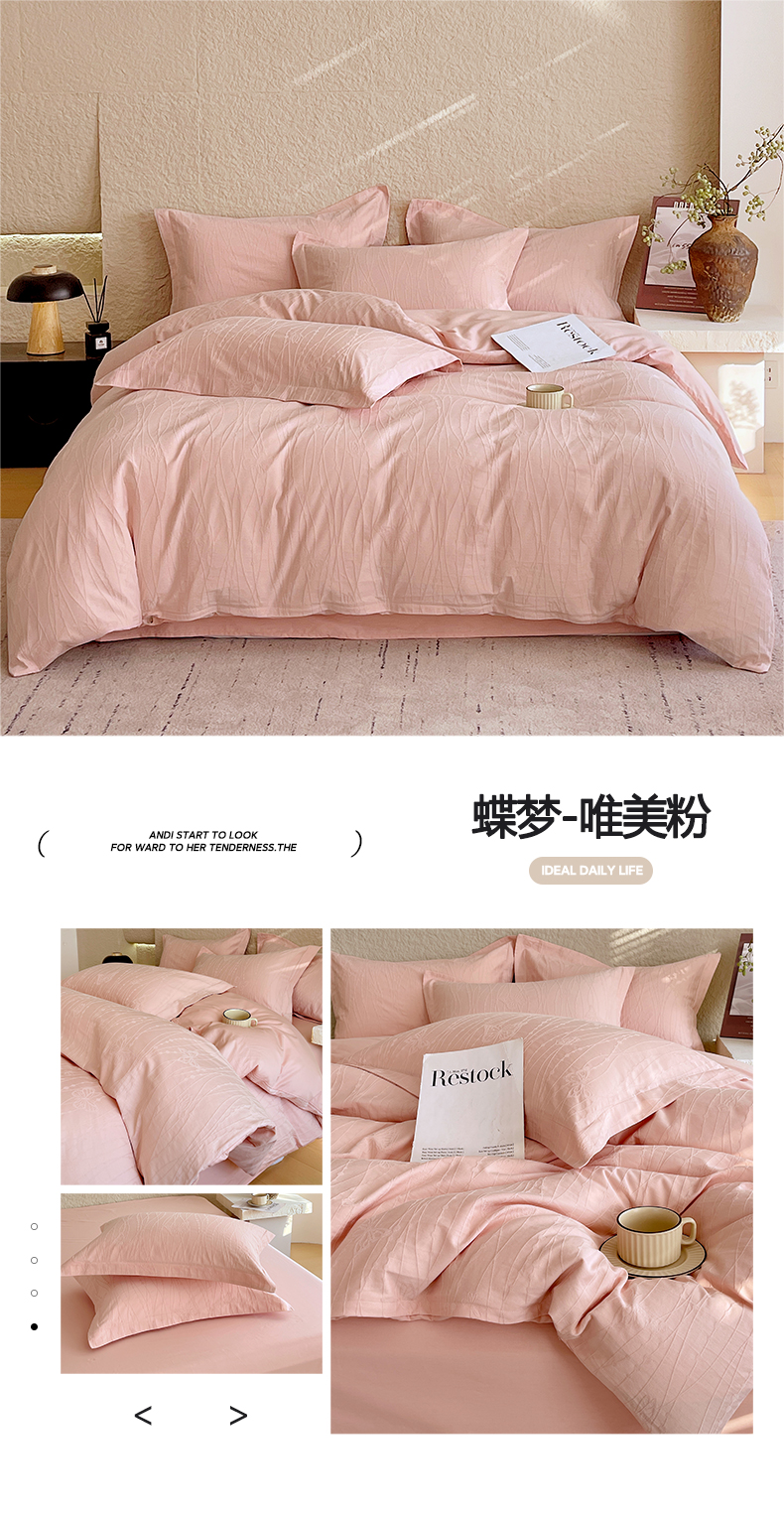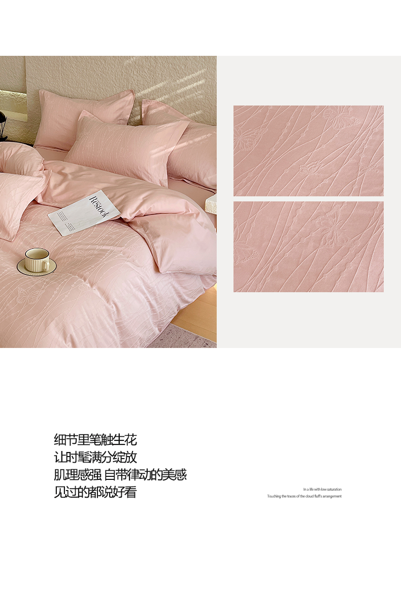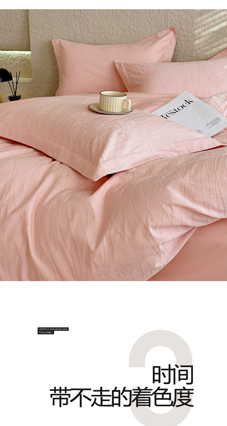 麦田家纺 2026新款A类全棉亮面浮雕提花四件套 蝶梦-唯美粉