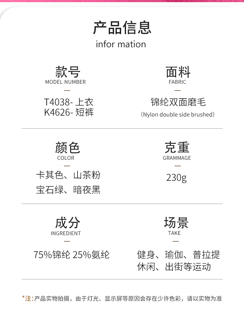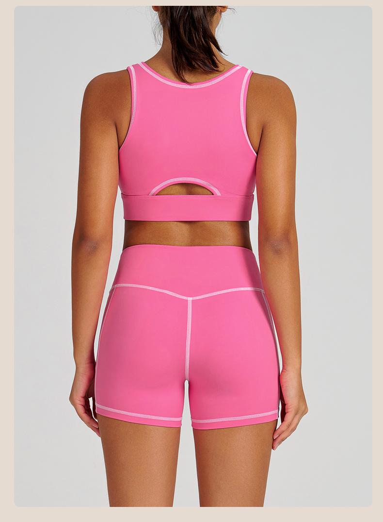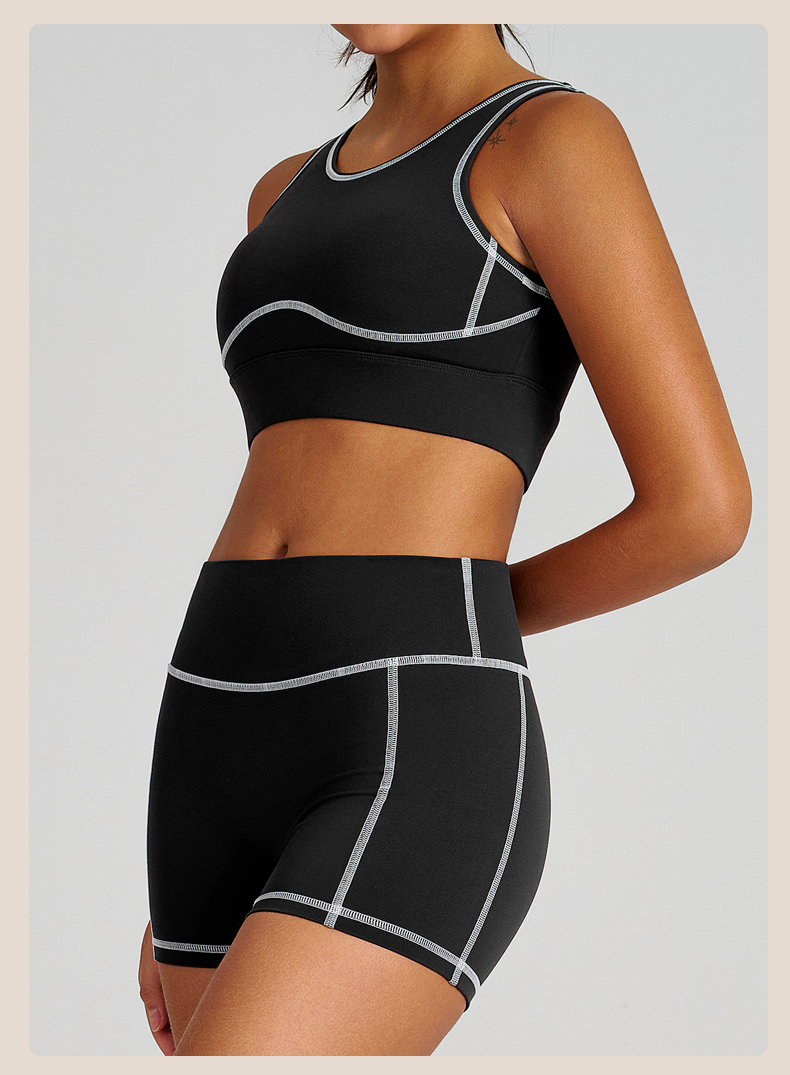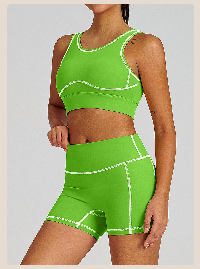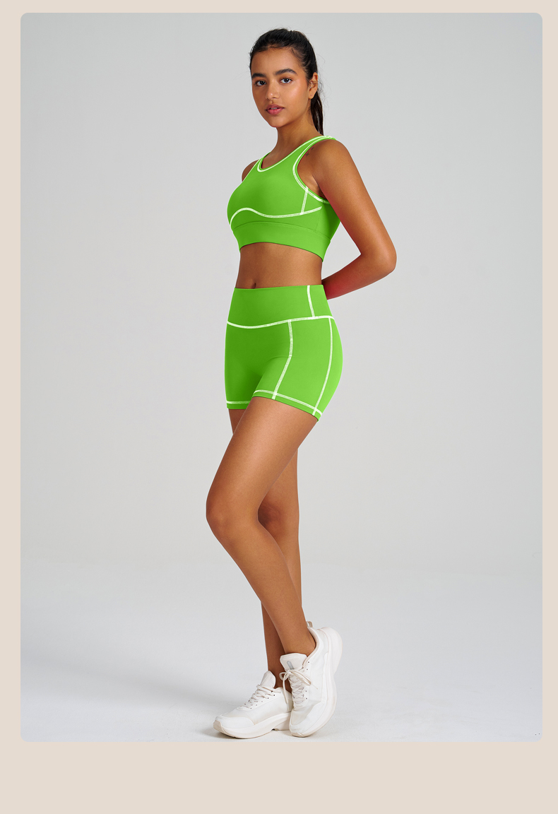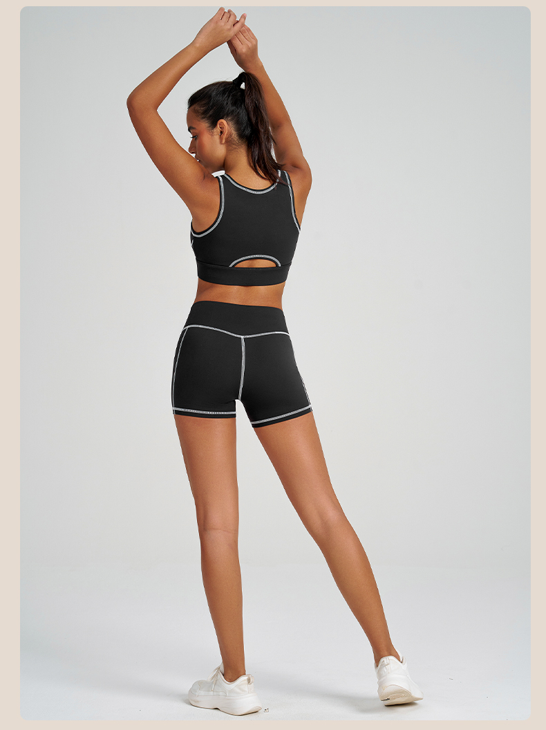 商品名称:(总)沐珩家纺 2026新款跨境户外运动套装短裤背心撞色跑步速干运动内衣吊带瑜伽服套装女可印字印logo
