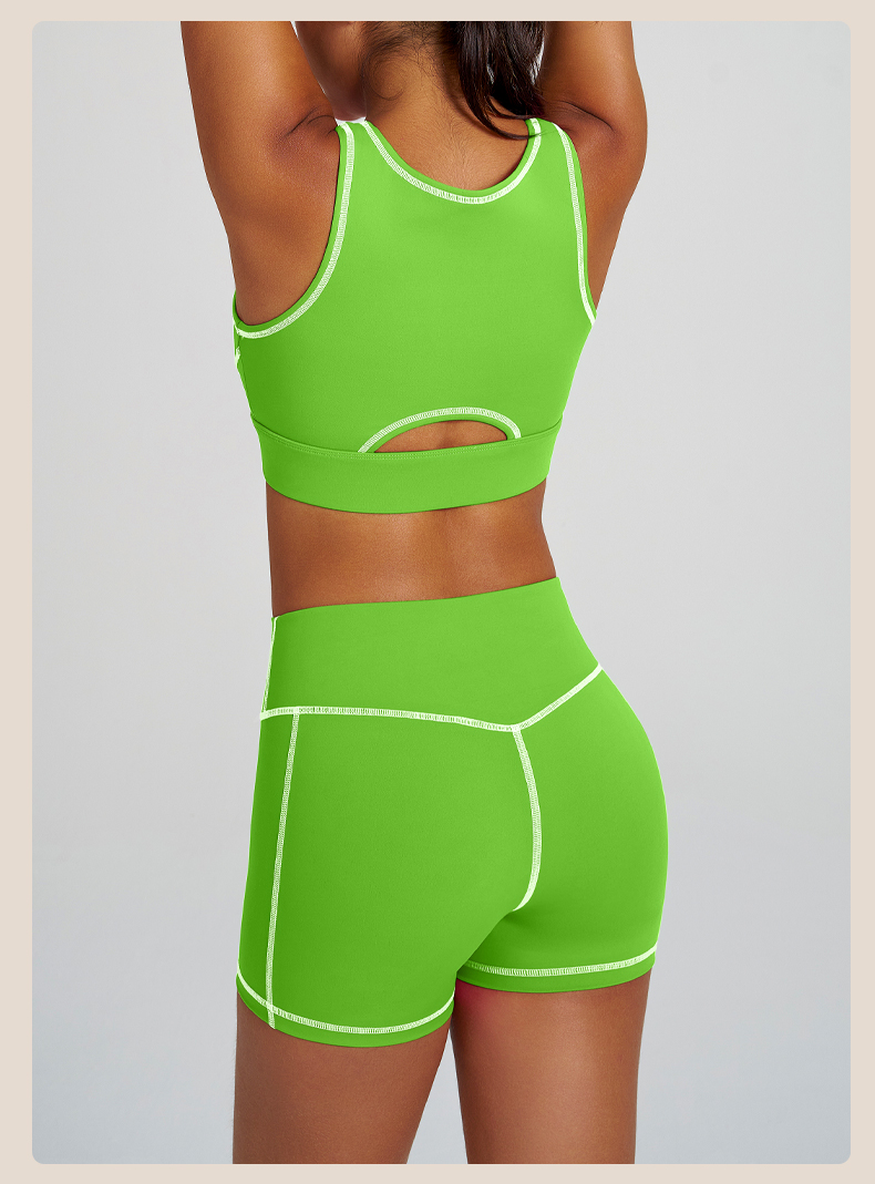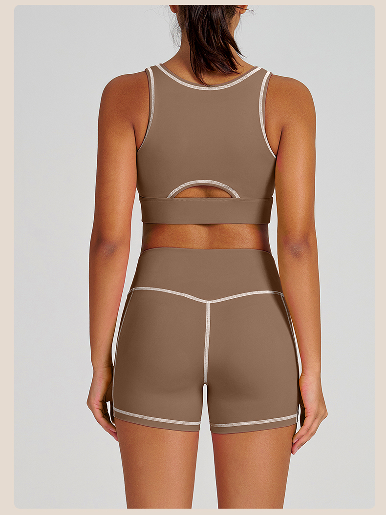 (总)沐珩家纺 2026新款跨境户外运动套装短裤背心撞色跑步速干运动内衣吊带瑜伽服套装女可印字印logo