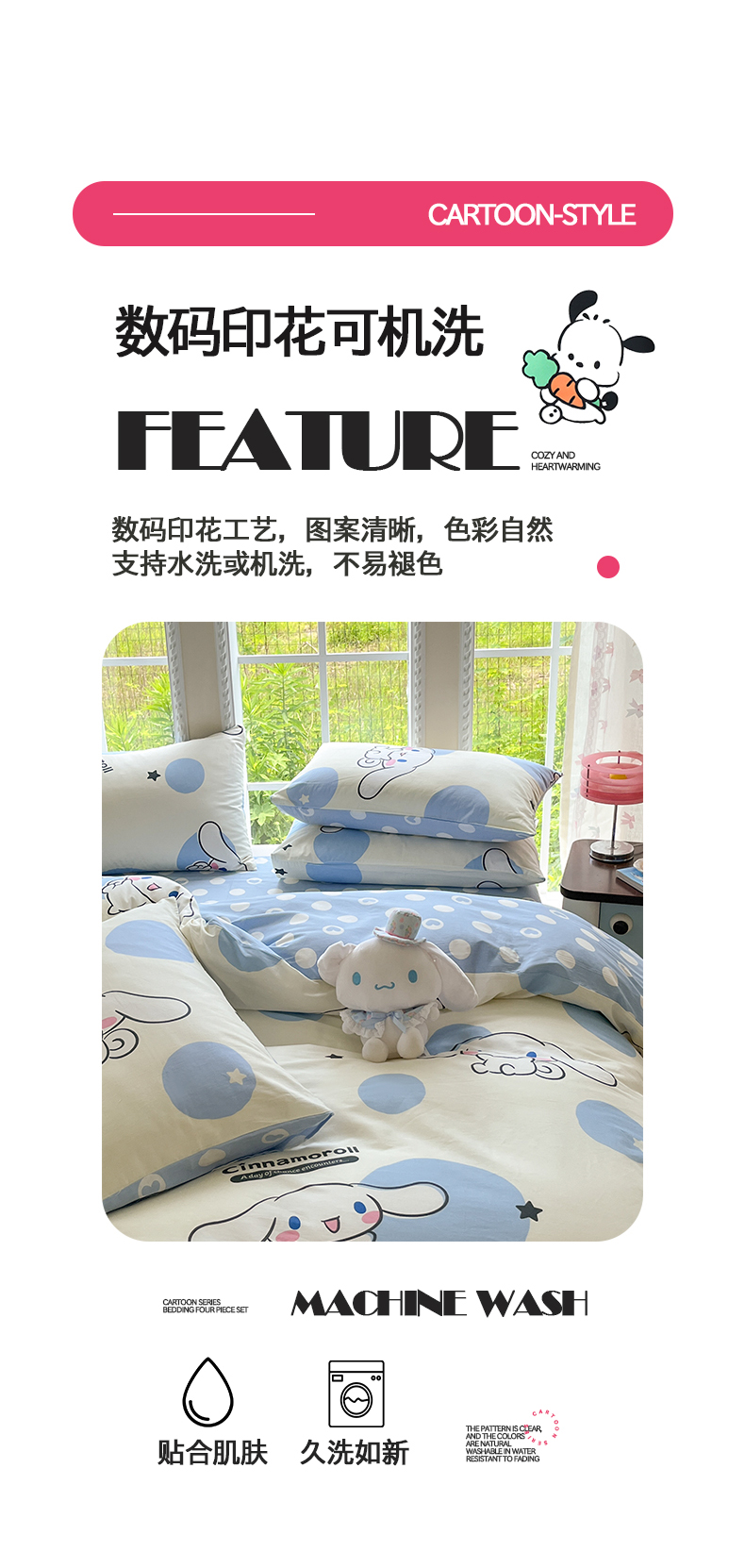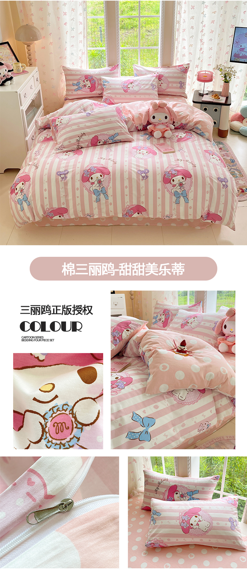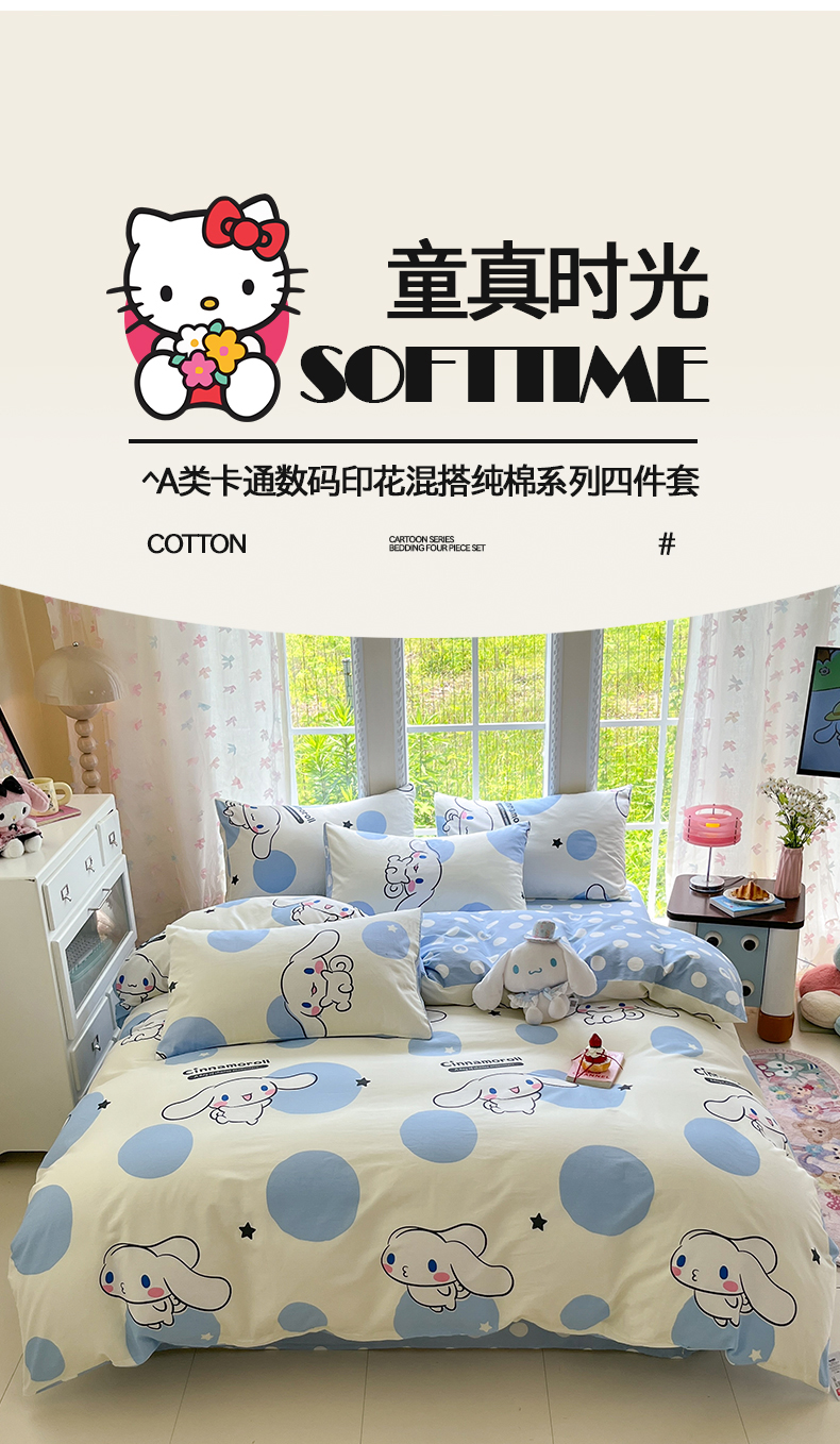 商品名称:(总)桃子家居 2026新款A类三丽鸥正版授权卡通数码印花混搭纯棉印花系列四件套