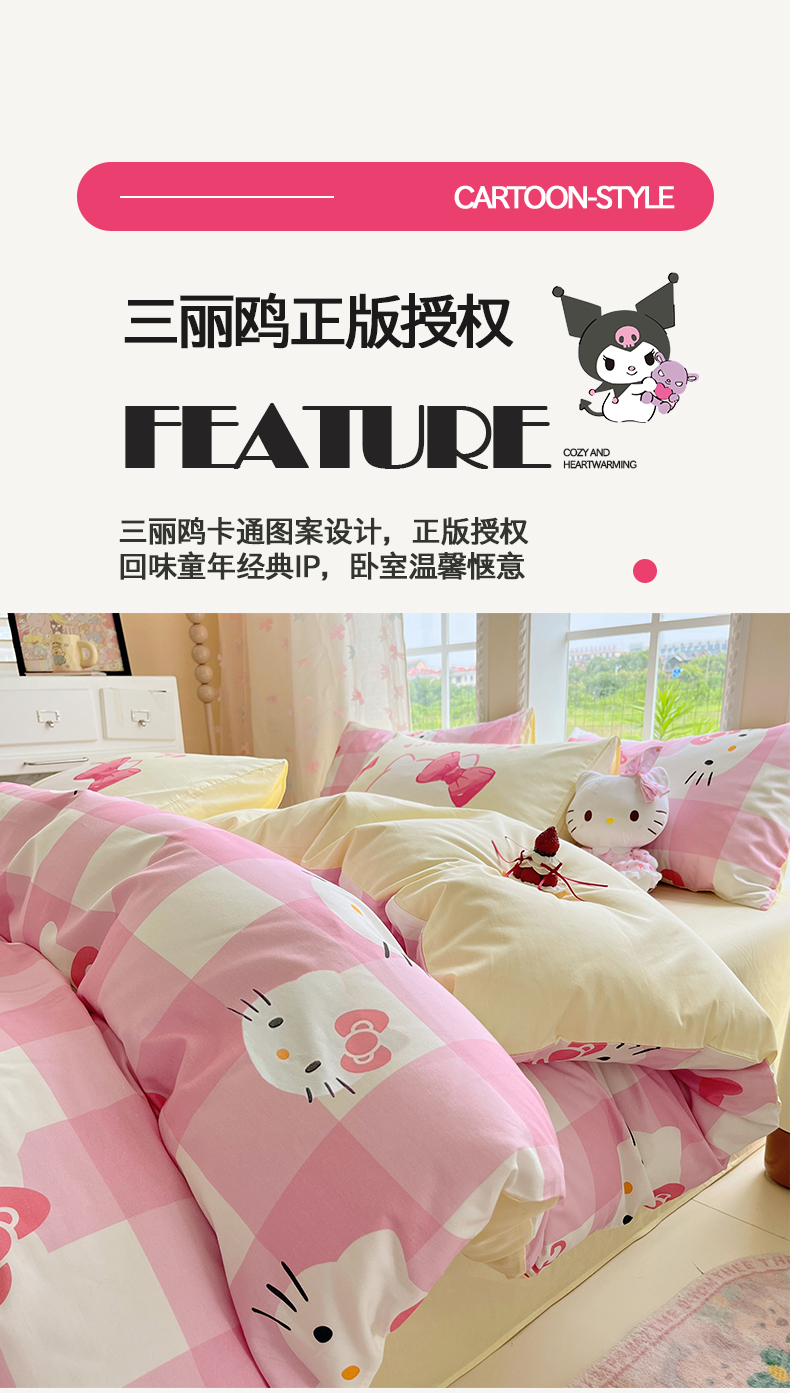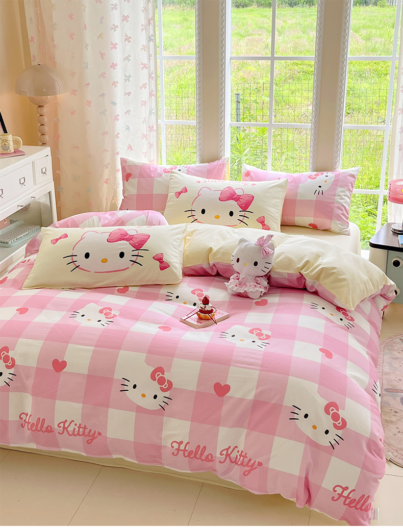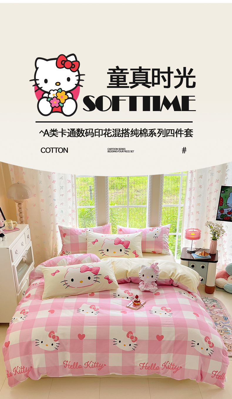 当前位置: 91家纺网 > 商品网购 > 床品套件 > 四件套 > 全棉普通四件套 > 桃子家居 2026新款A类三丽鸥正版授权卡通数码印花混搭纯棉印花系列四件套 棉三丽鸥-混搭告白kt猫