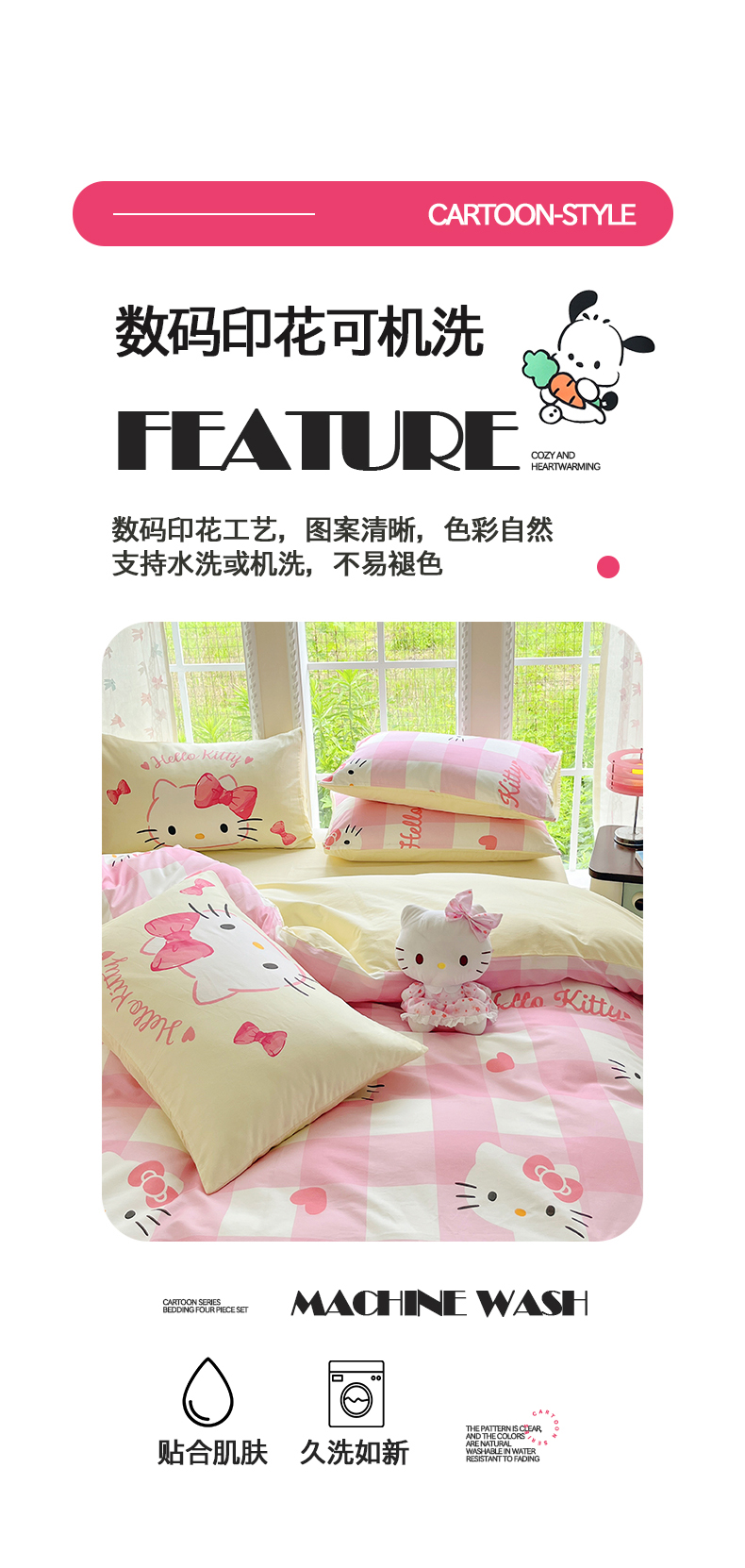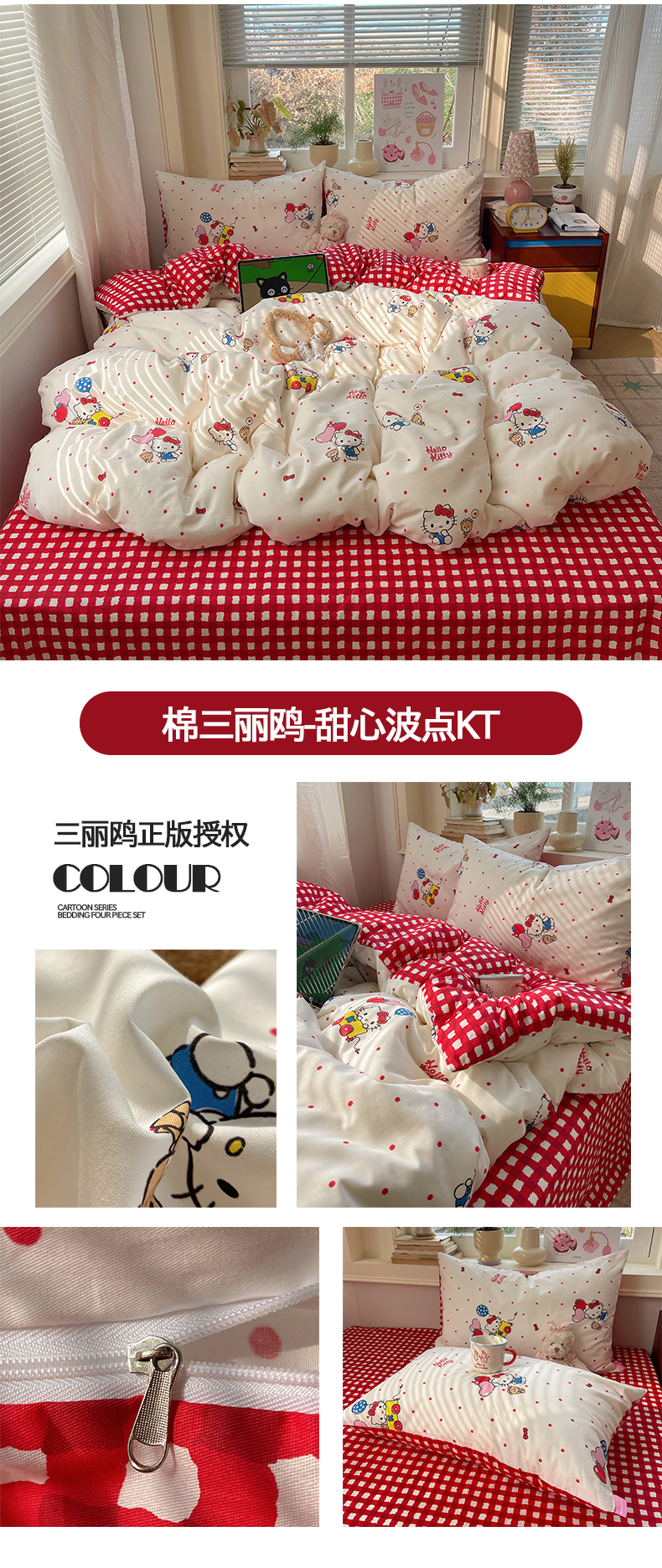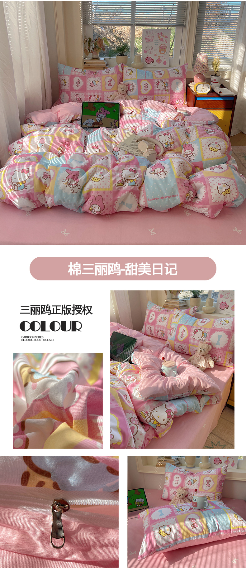 当前位置: 91家纺网 > 商品网购 > 床品套件 > 四件套 > 全棉普通四件套 > 桃子家居 2026新款A类三丽鸥正版授权卡通数码印花混搭纯棉印花系列四件套 棉三丽鸥-混搭告白kt猫