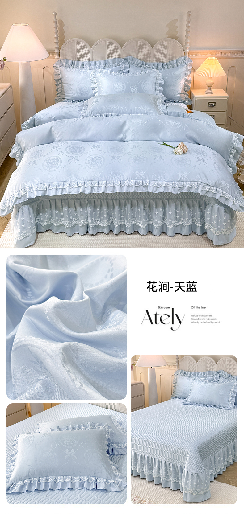 当前位置: 91家纺网 > 商品网购 > 床品套件 > 四件套 > 其它四件套 > 优贝家纺 2026春夏新款提花水洗天丝冰丝天丝韩版夹棉床盖四件套 堇色齐梦