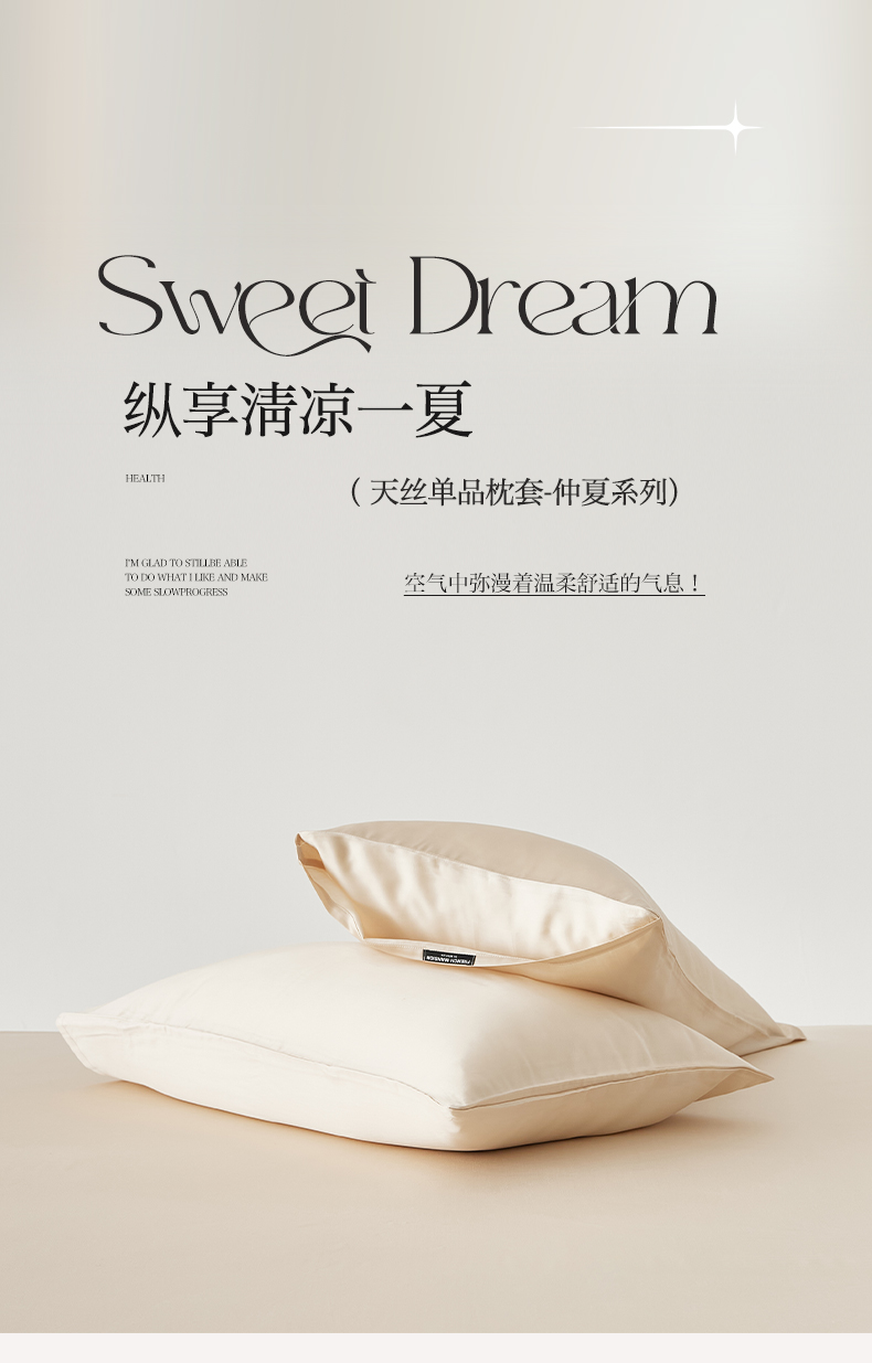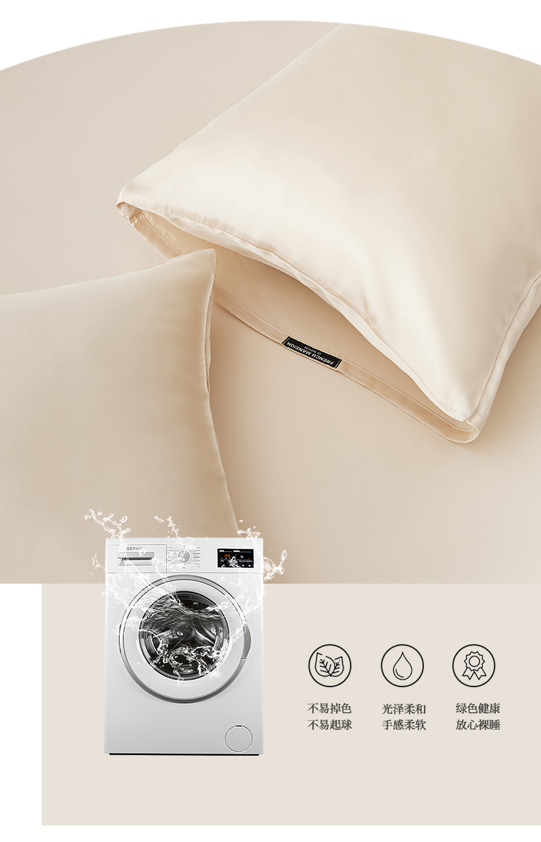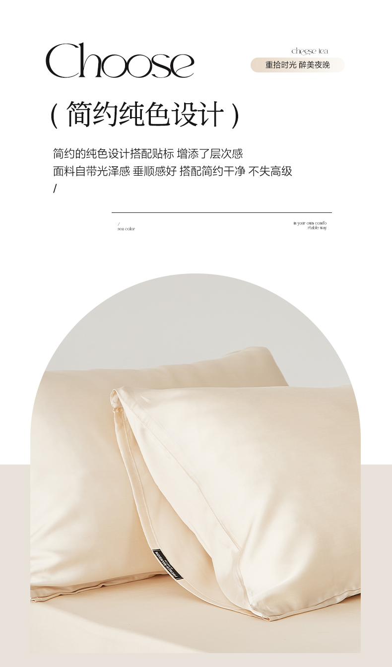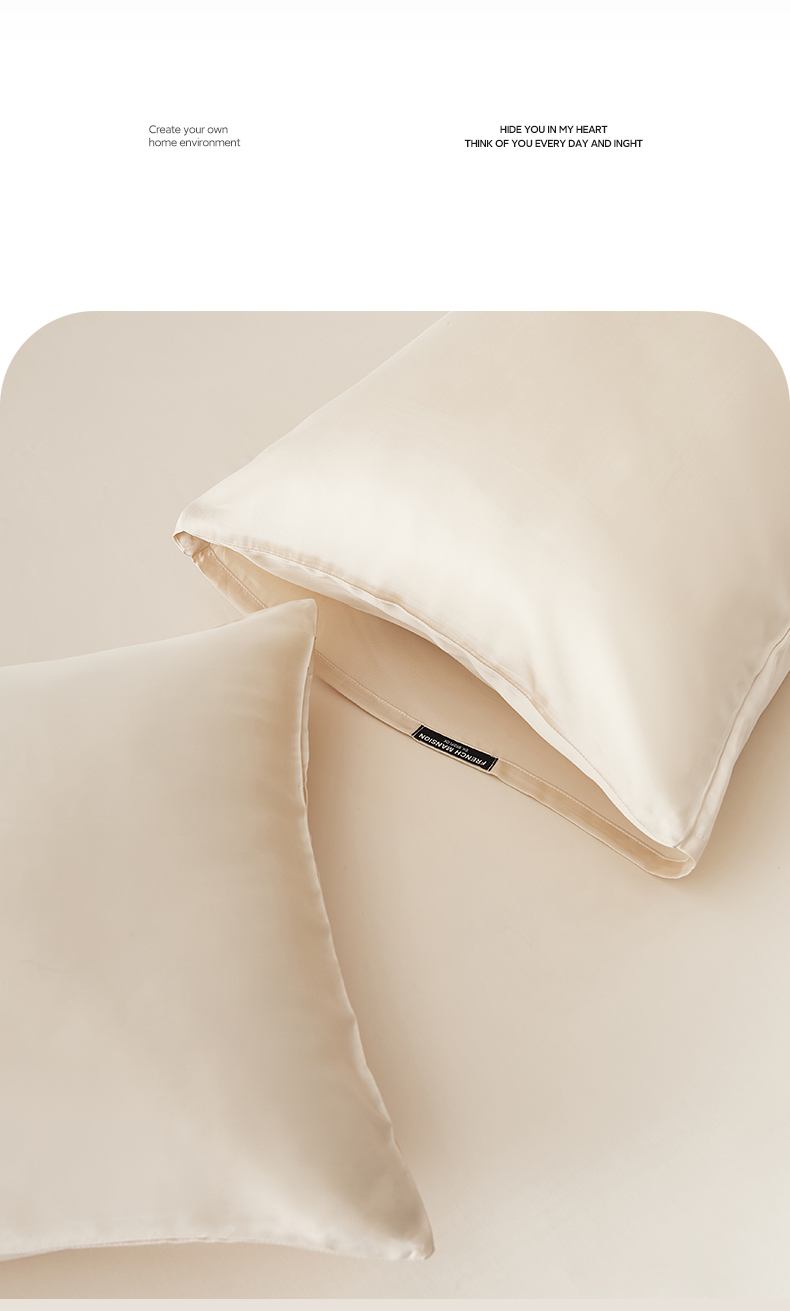 商品名称:EH家居 2026春夏新款简约纯色天丝单品枕套(AA版)(床单床笠同款) 奶油香槟