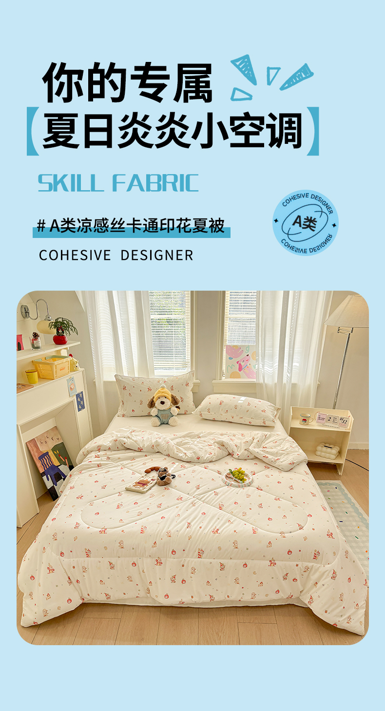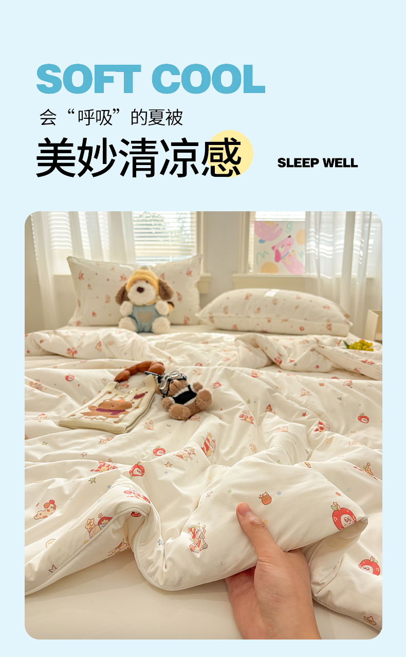 (总)益多眠 【同款超低价】2026新款锦氨夏凉被凉感丝夏被空调被单人夏被自带凉感冰丝夏被【四周踩棉】,爱心小熊,粉裙女孩,格子小狗,萌宠派对,奶蓝小猫,泡芙狗,小木马,星星人