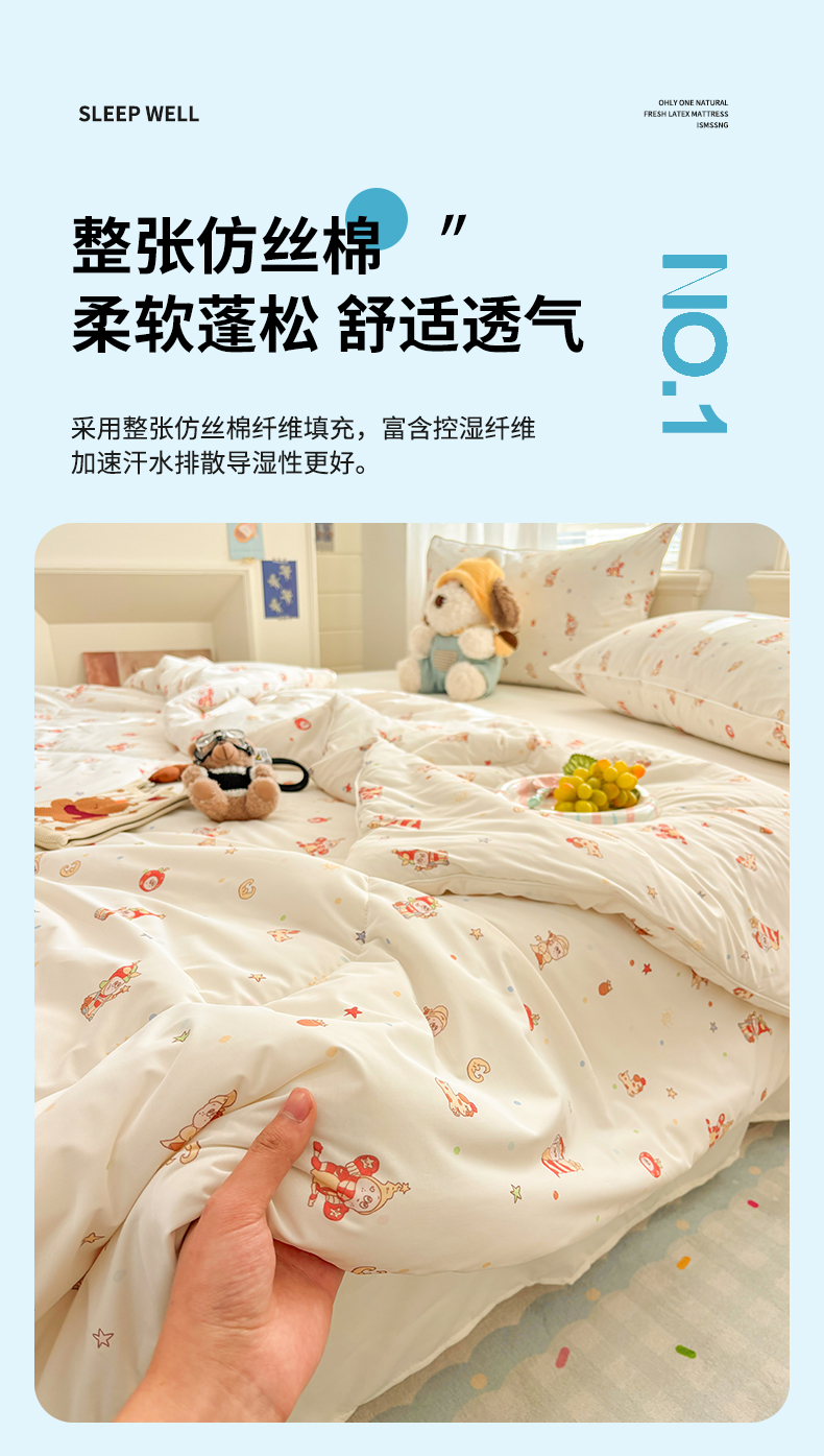 商品名称:益多眠 【同款超低价】2026新款锦氨夏凉被凉感丝夏被空调被单人夏被自带凉感冰丝夏被【四周踩棉】 星星人
