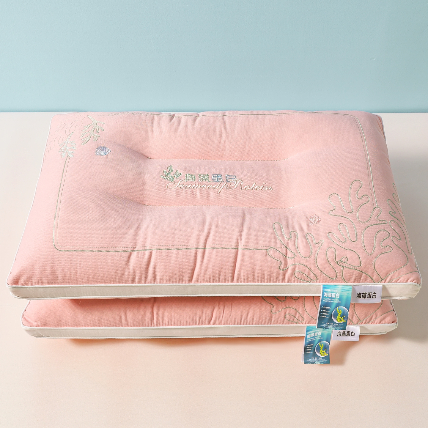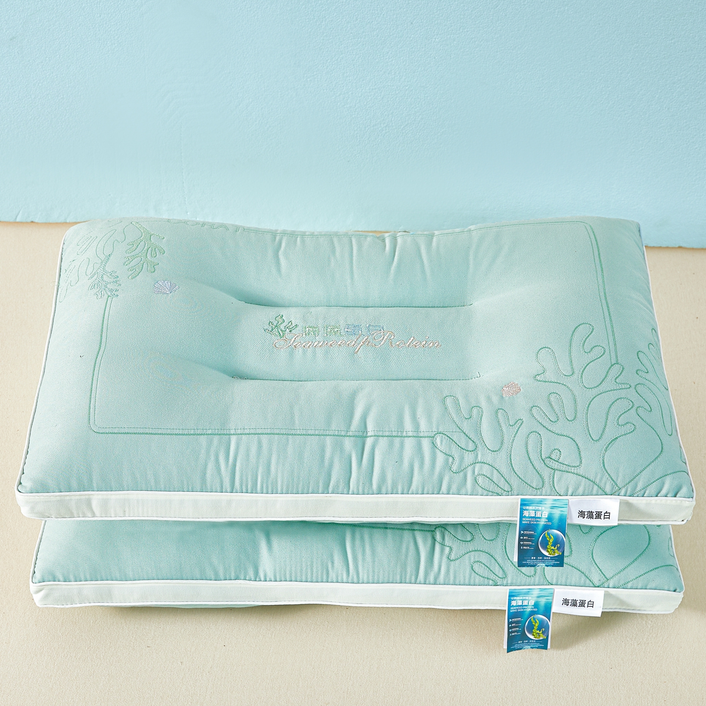 商品名称:浩宇家纺 2026新款刺绣款超柔软枕头枕芯成人家用舒适定型护颈款6312 薄荷绿