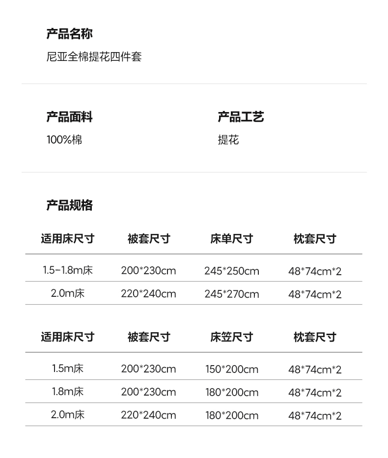 1.5m床笠款四件套 | ¥230.00 |