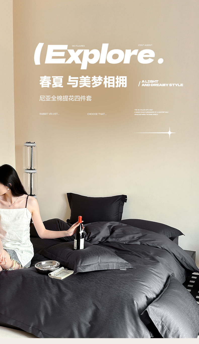 当前位置: 91家纺网 > 商品网购 > 床品套件 > 四件套 > 全棉普通四件套 > (总)三味舒屋 2026新款长绒棉全棉提花四件套-尼亚系列拍法二