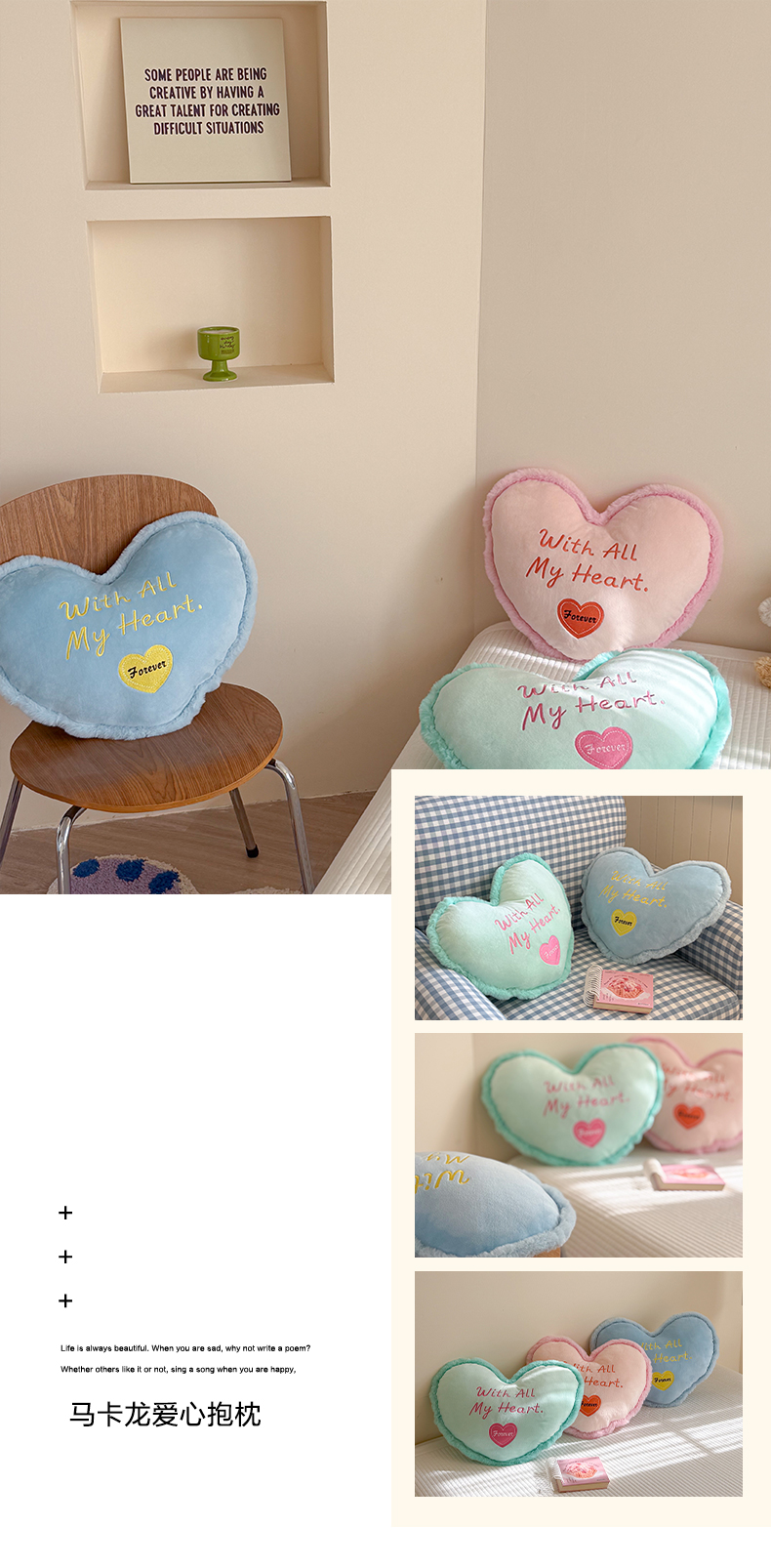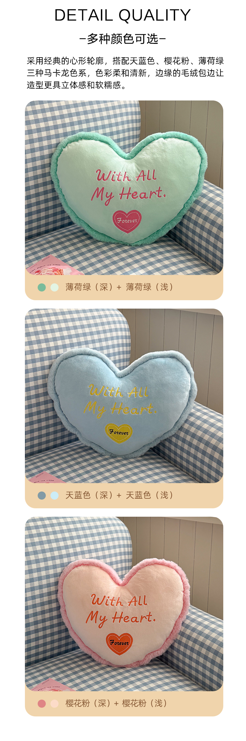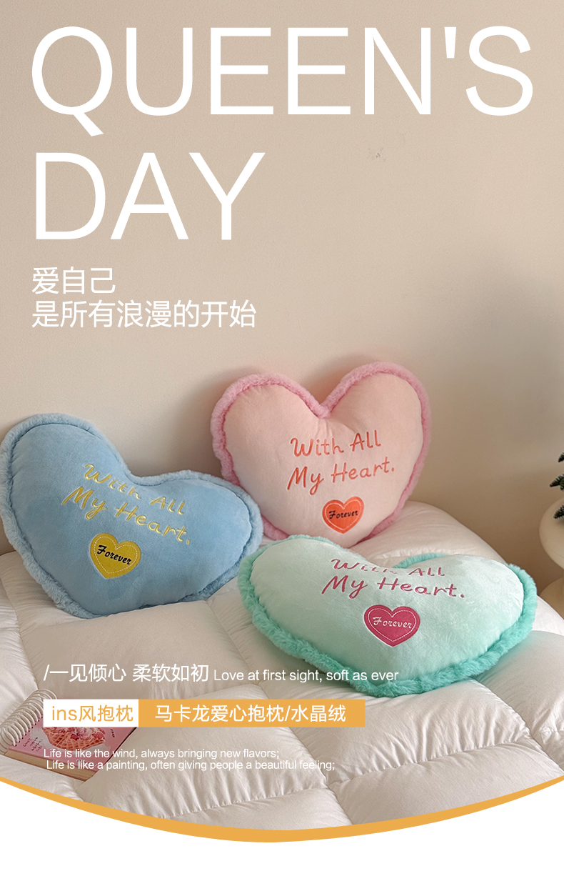 【3.7周六秒杀 三人助力9.9带回家】水晶绒马卡龙爱心抱枕