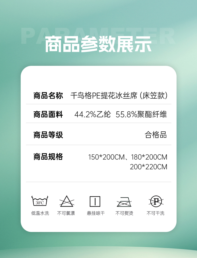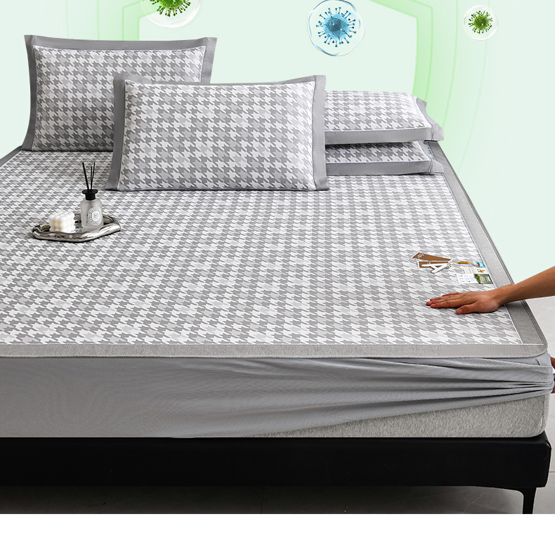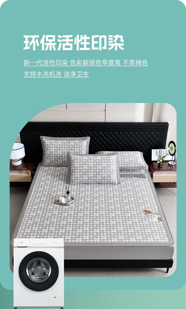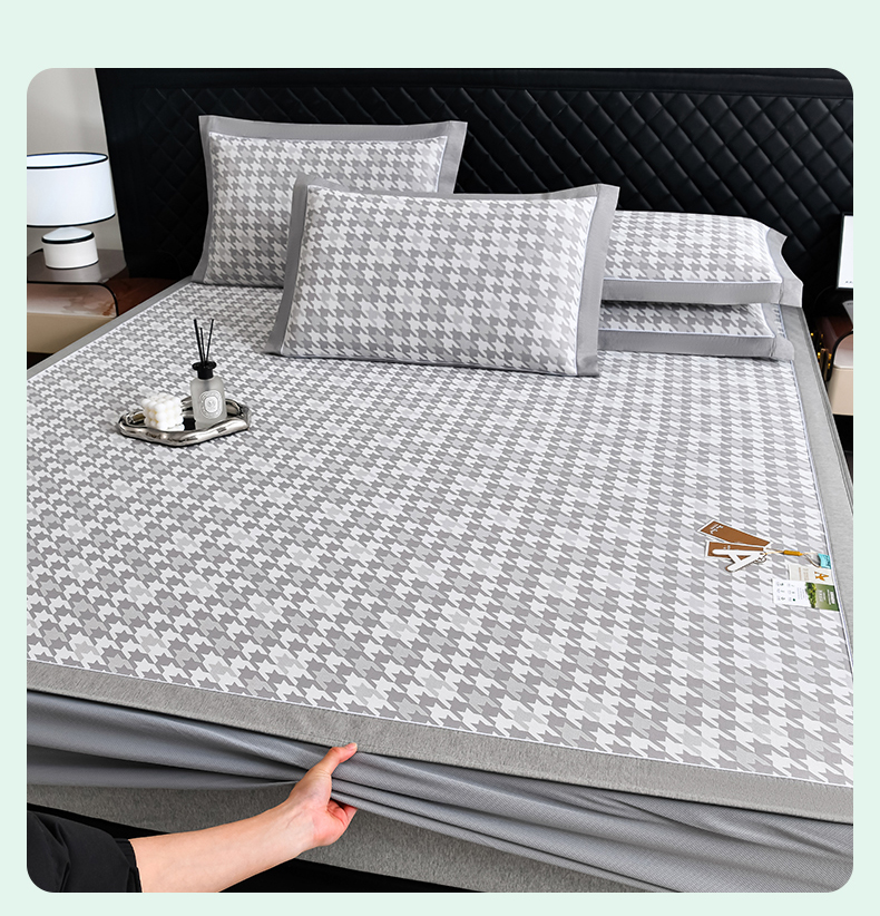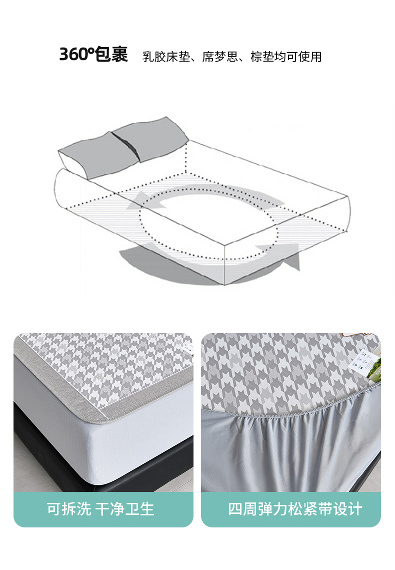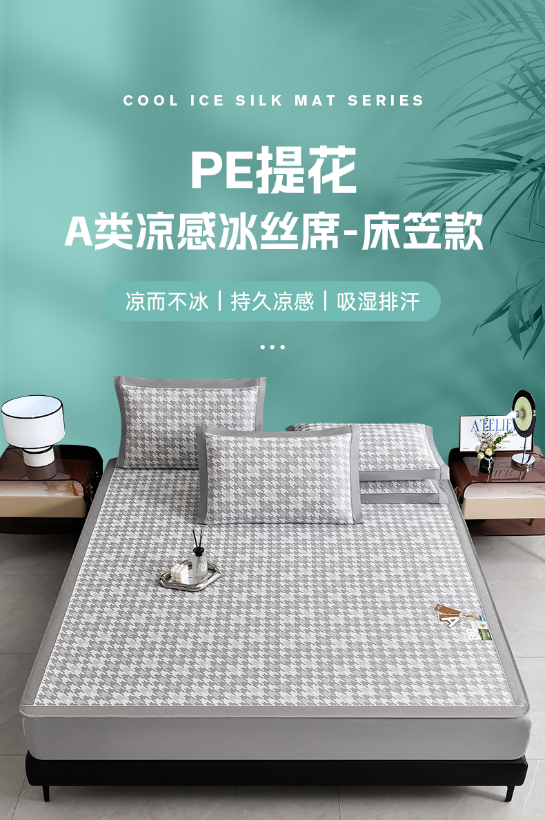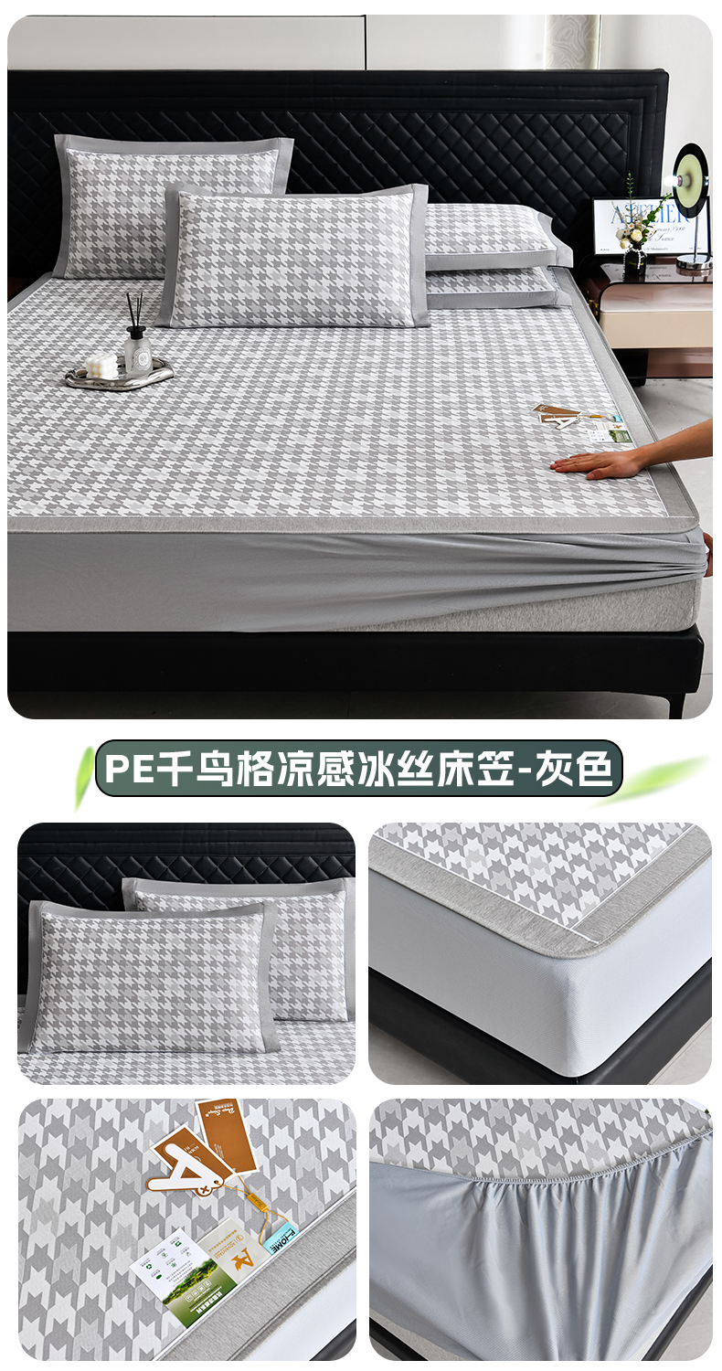 商品名称:小牛席业 2026新款PE千鸟格凉感冰丝席系列(床笠款) 灰色