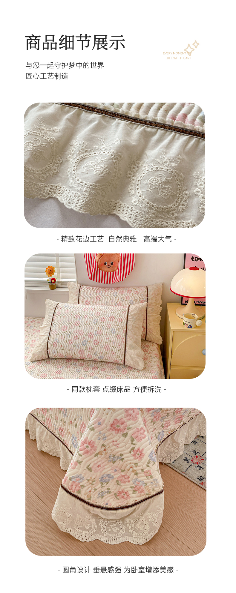当前位置: 91家纺网 > 商品网购 > 床上用品 > 床盖 > 岚吉家纺 2026年新款A类法式全棉花边床盖三件套四件套 羽兮