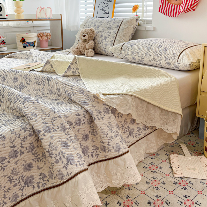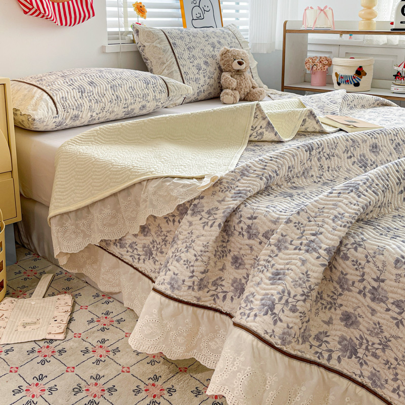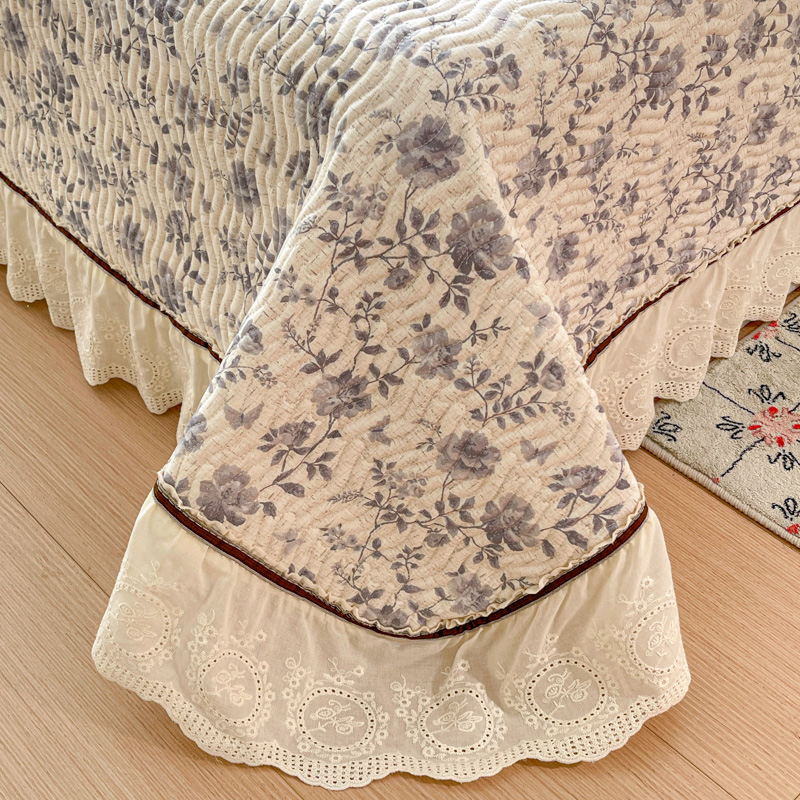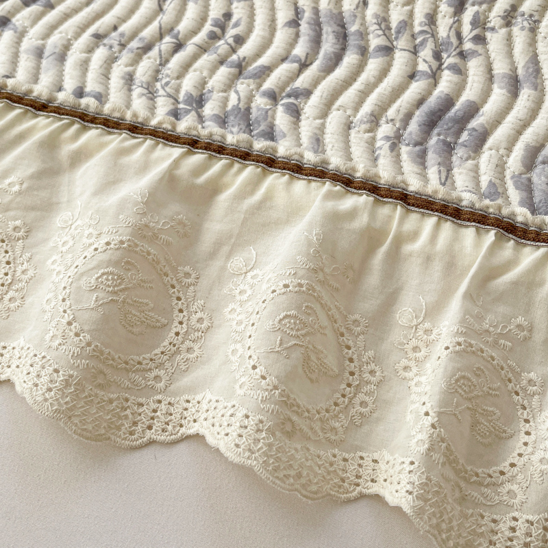 岚吉家纺 2026年新款A类法式全棉花边床盖三件套四件套 羽兮