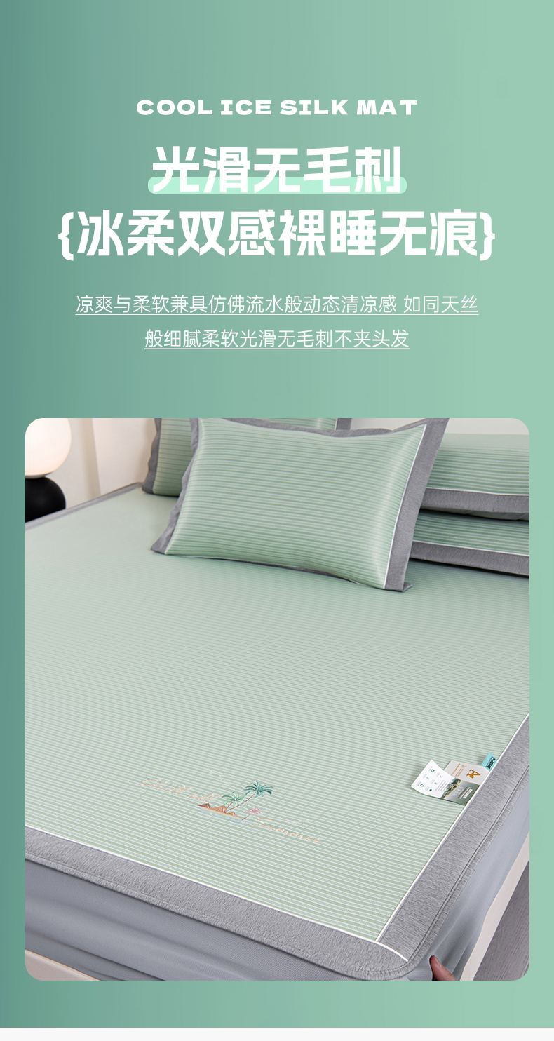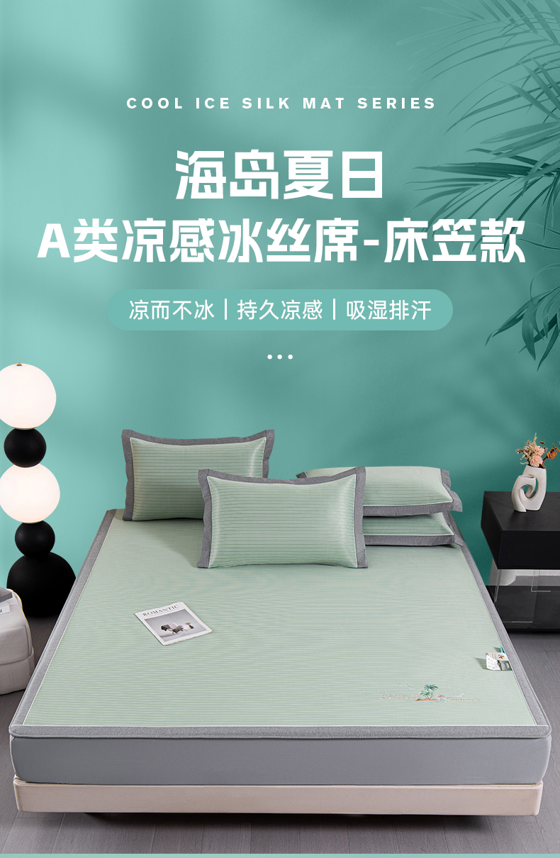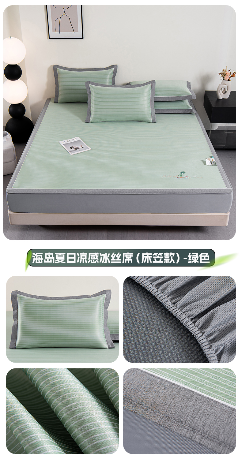 商品名称:小牛席业 2026新款海岛夏日凉感冰丝席系列(床笠款) 海岛夏日-绿色