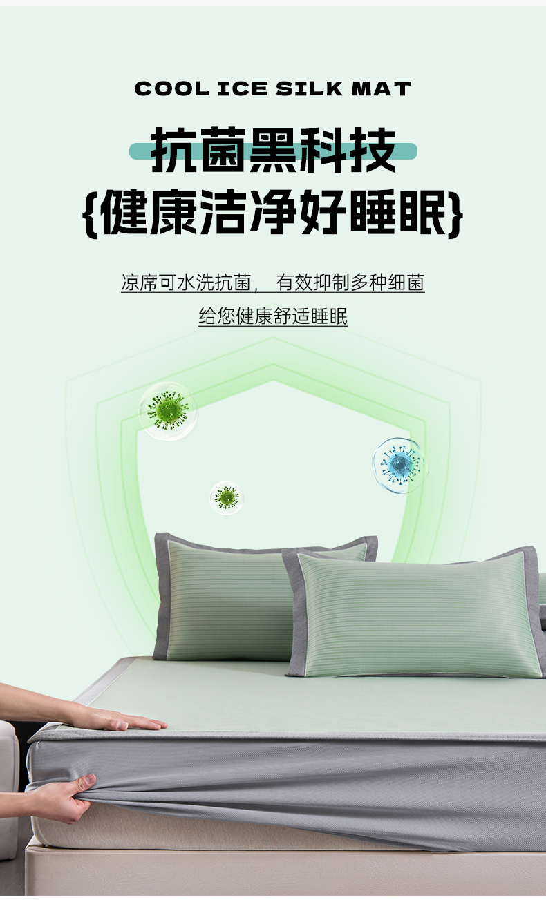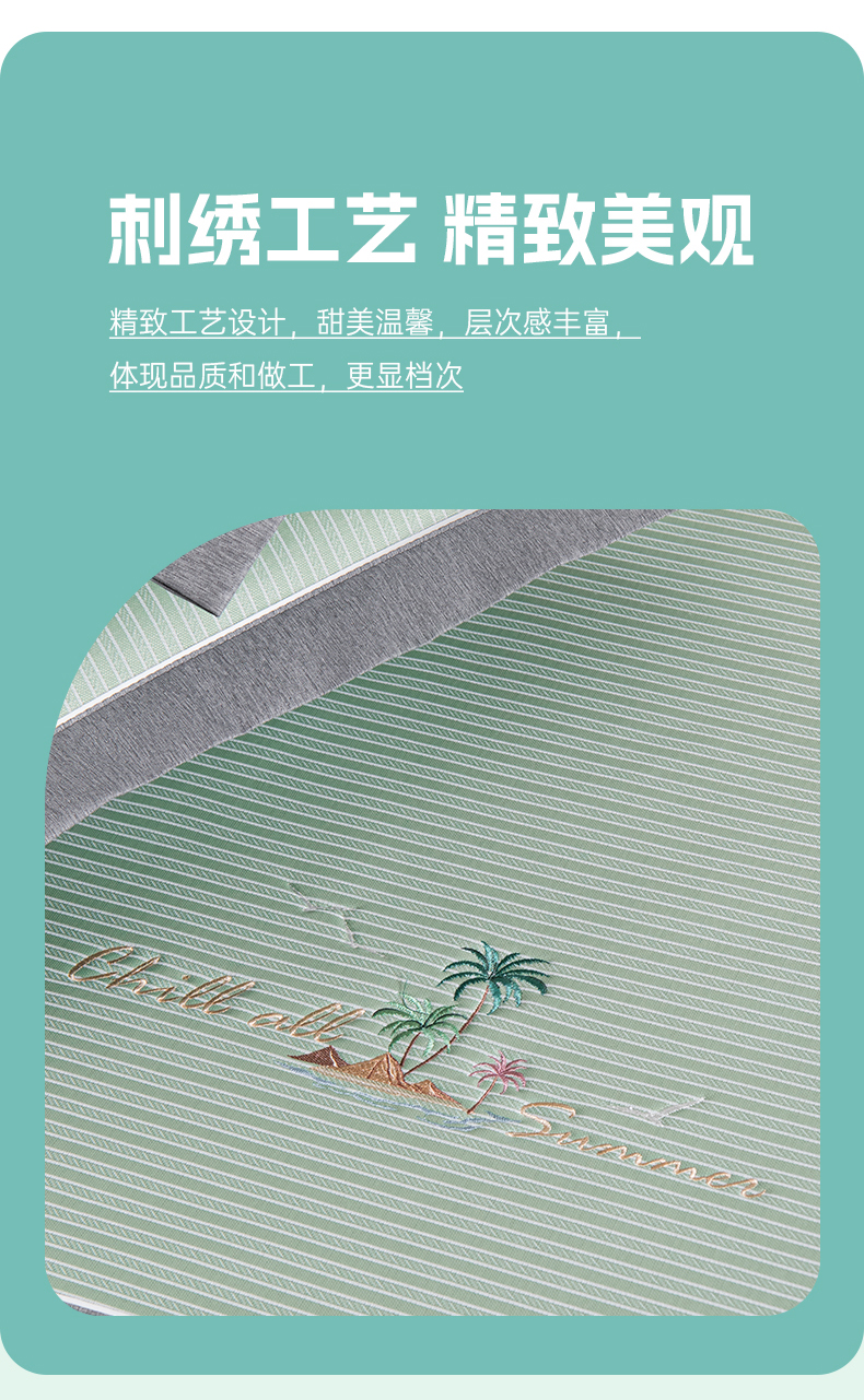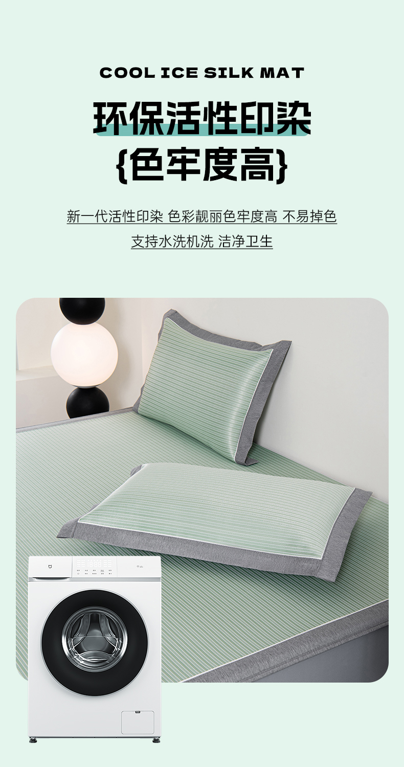 商品名称:小牛席业 2026新款海岛夏日凉感冰丝席系列(床笠款) 海岛夏日-绿色