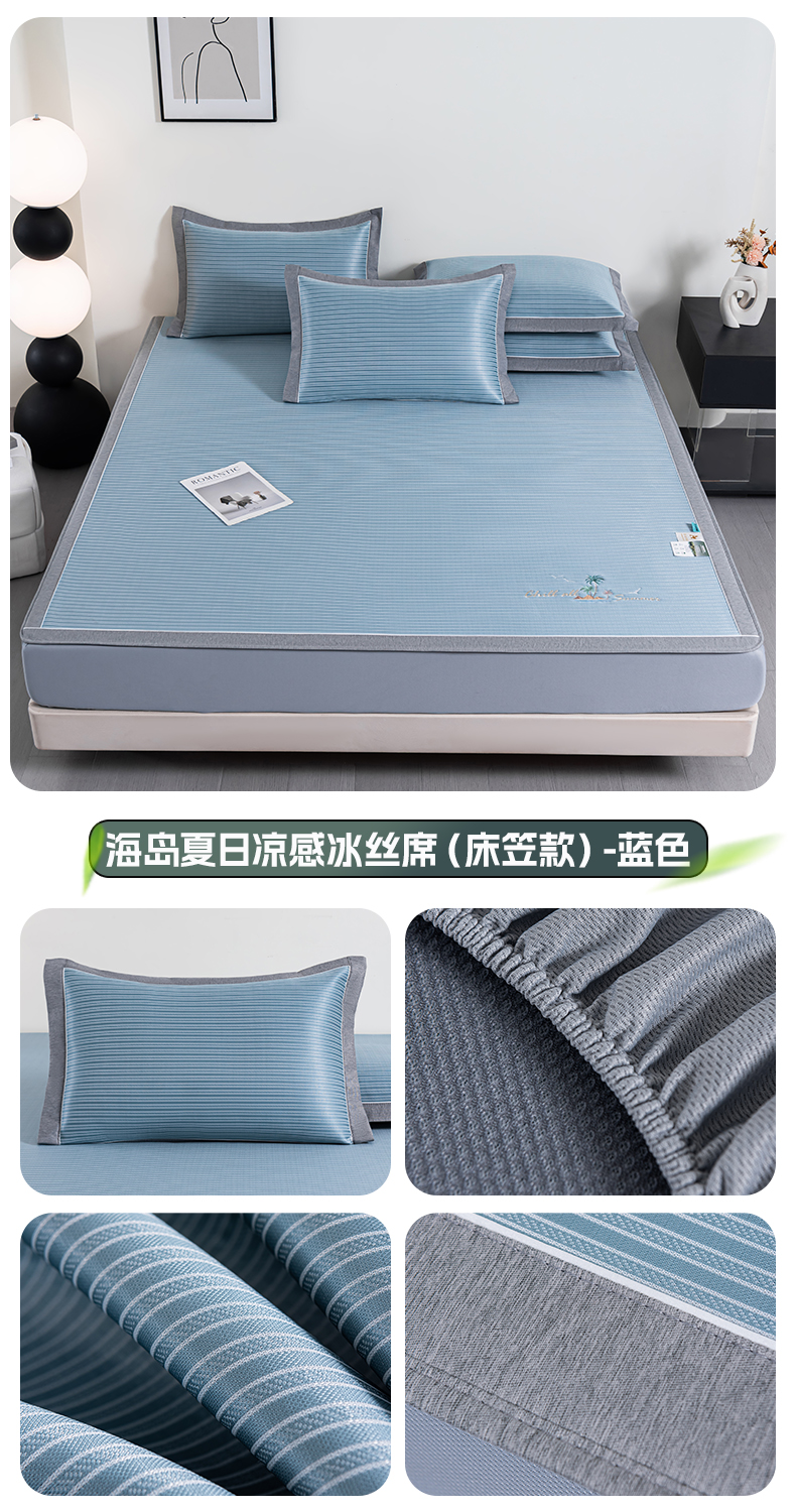 (总)2023新款超精密冰丝席-小斜纹系列-床笠款藤席凉席竹席,粉色,蓝色,绿色,银灰