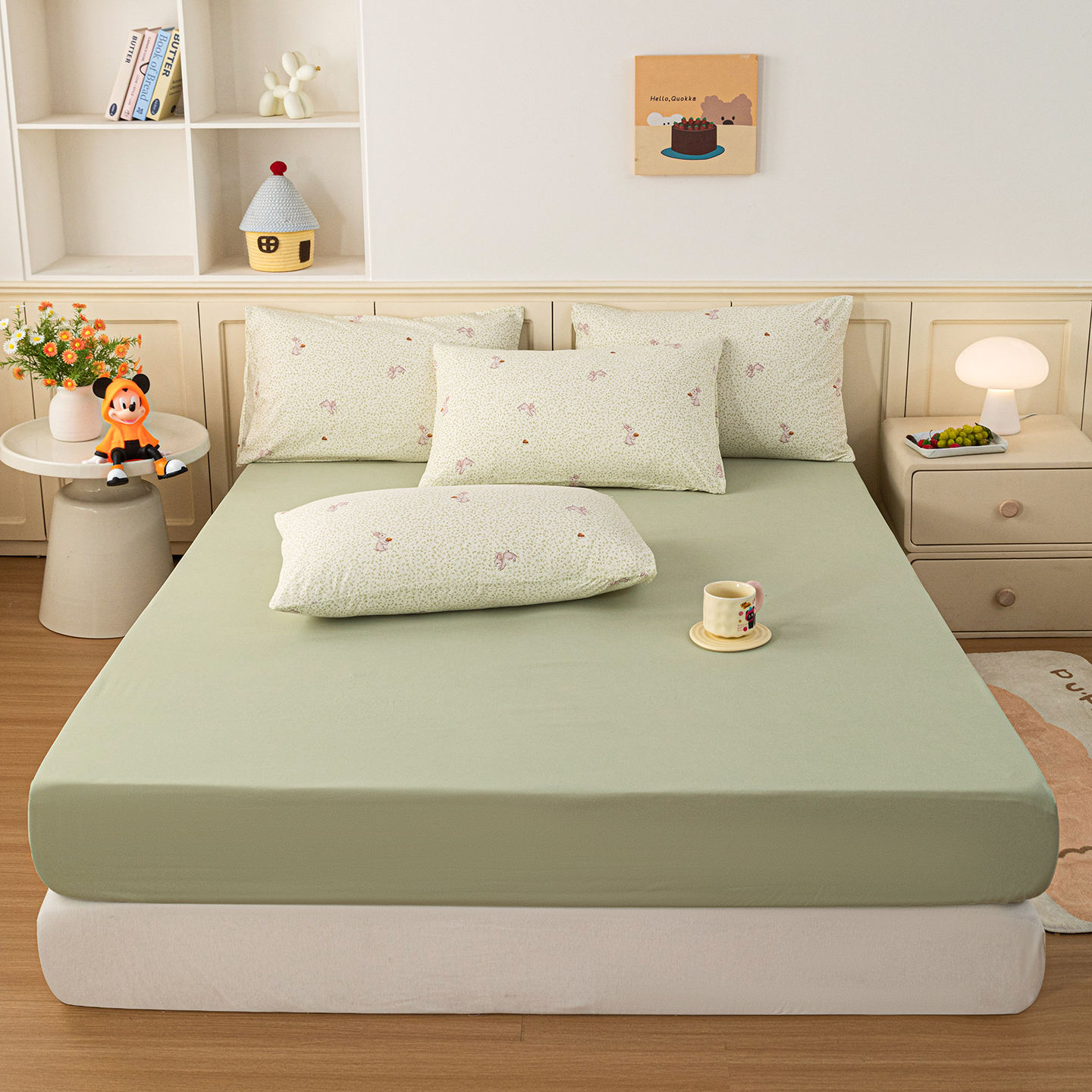 • 91家纺网 家纺一手货源 找家纺 梦纤绒 2026新款卡通印花床笠单品床笠床笠单件 萌兔小窝