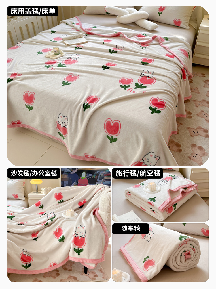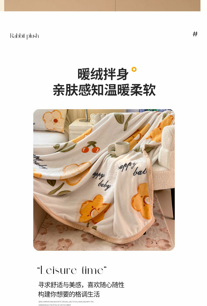 商品名称:宅部落 2026新款亲肤舒适牛奶绒印花毛毯毯子300克云貂绒盖毯毯子 幸运之花