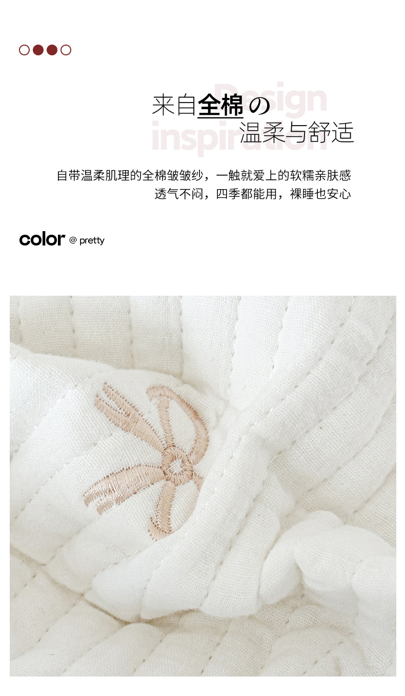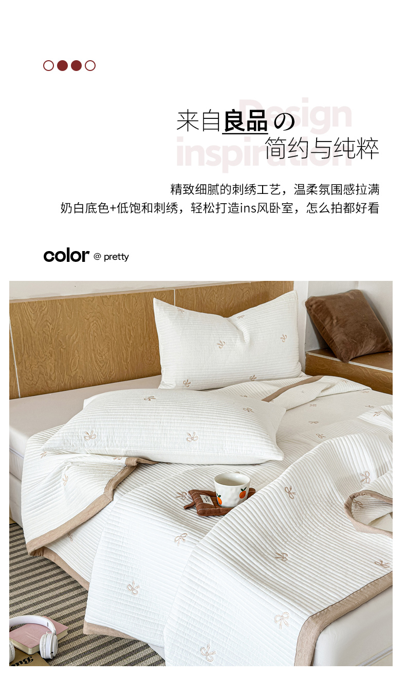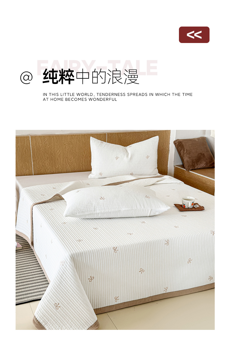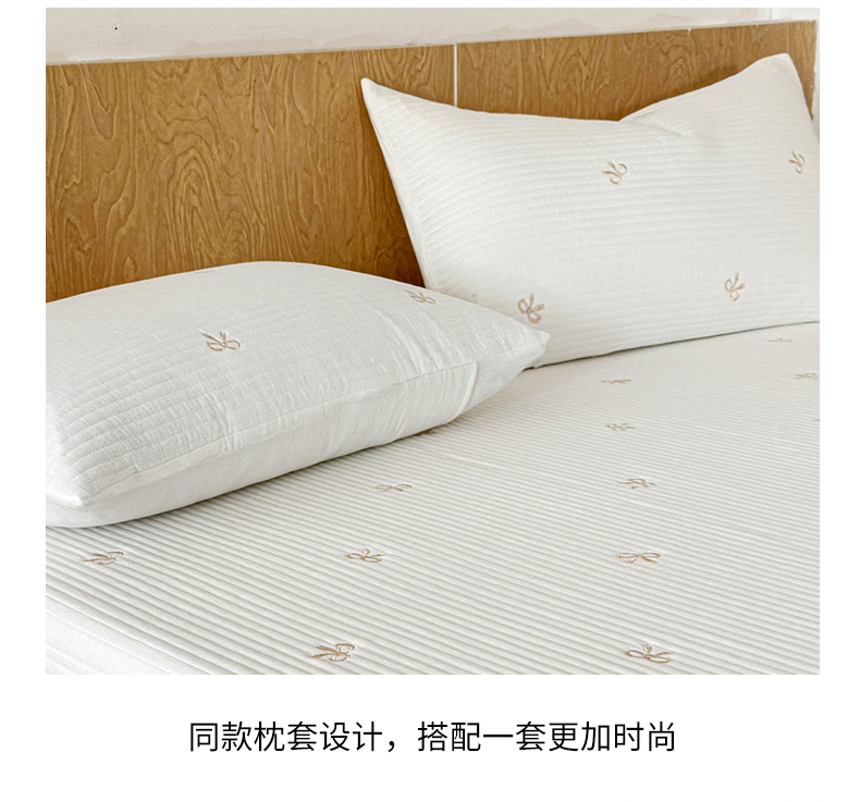 商品名称:木楌家居 2026春夏新款双面全棉纯棉皱皱纱刺绣款床盖床盖单件 奶咖蝴蝶结
