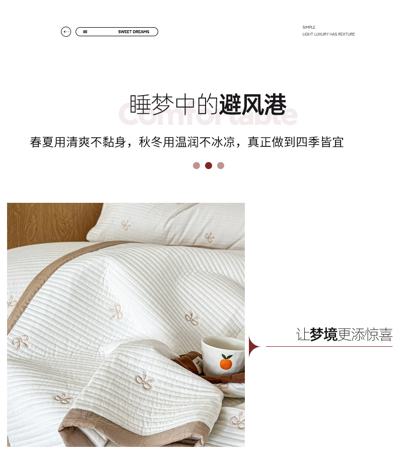 (总)木楌 2025年新款双层皱皱纱刺绣款夏被大豆被,蓓蕾,小飞象,蝴蝶结,领结兔,枇杷叶,三叶草,小樱桃,幸运熊