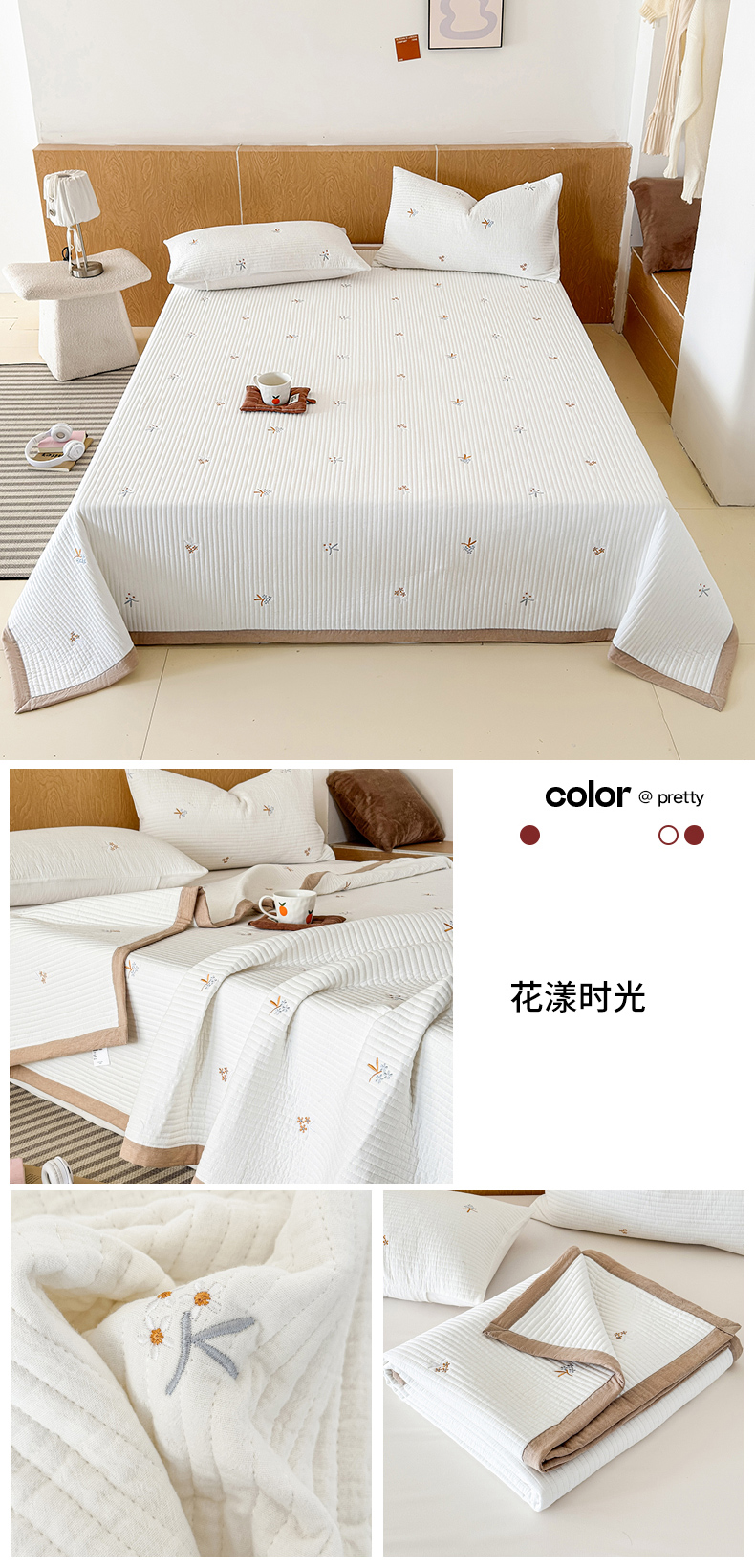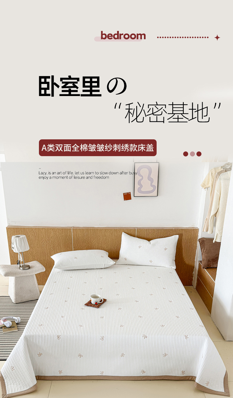 (总)木楌家居 2026春夏新款双面全棉纯棉皱皱纱刺绣款床盖床盖单件,组合图仅供展示不可下单,花漾时光,奶咖蝴蝶结,小熊奶糖,小芽日记,樱桃小方糖,月落星眠