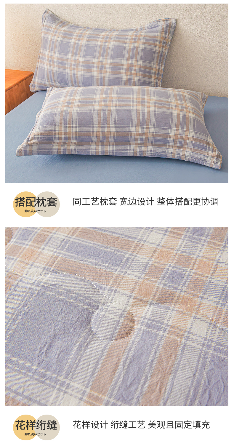被子 > 夏被 > 西域种棉人 2026新款A类新疆棉花夏凉被加宽包边水洗棉无印格子印花吸湿透气棉花夏被空调被 格子紫