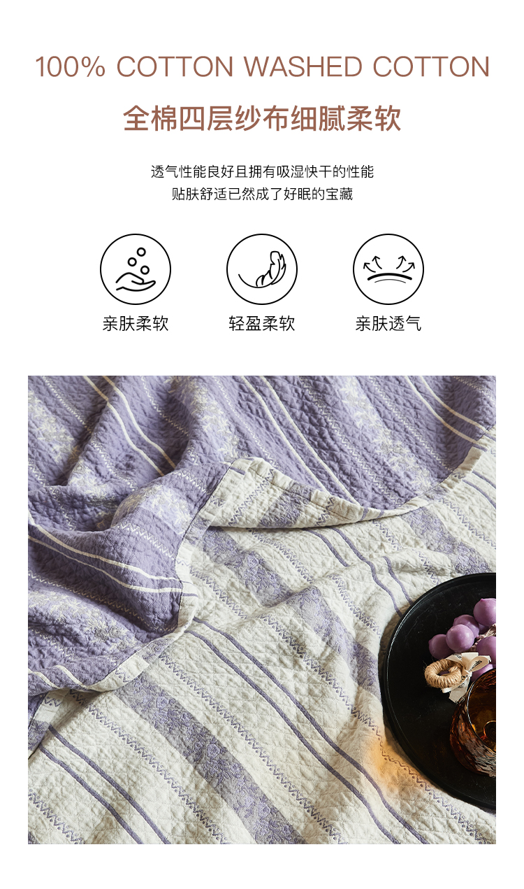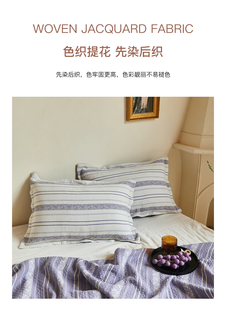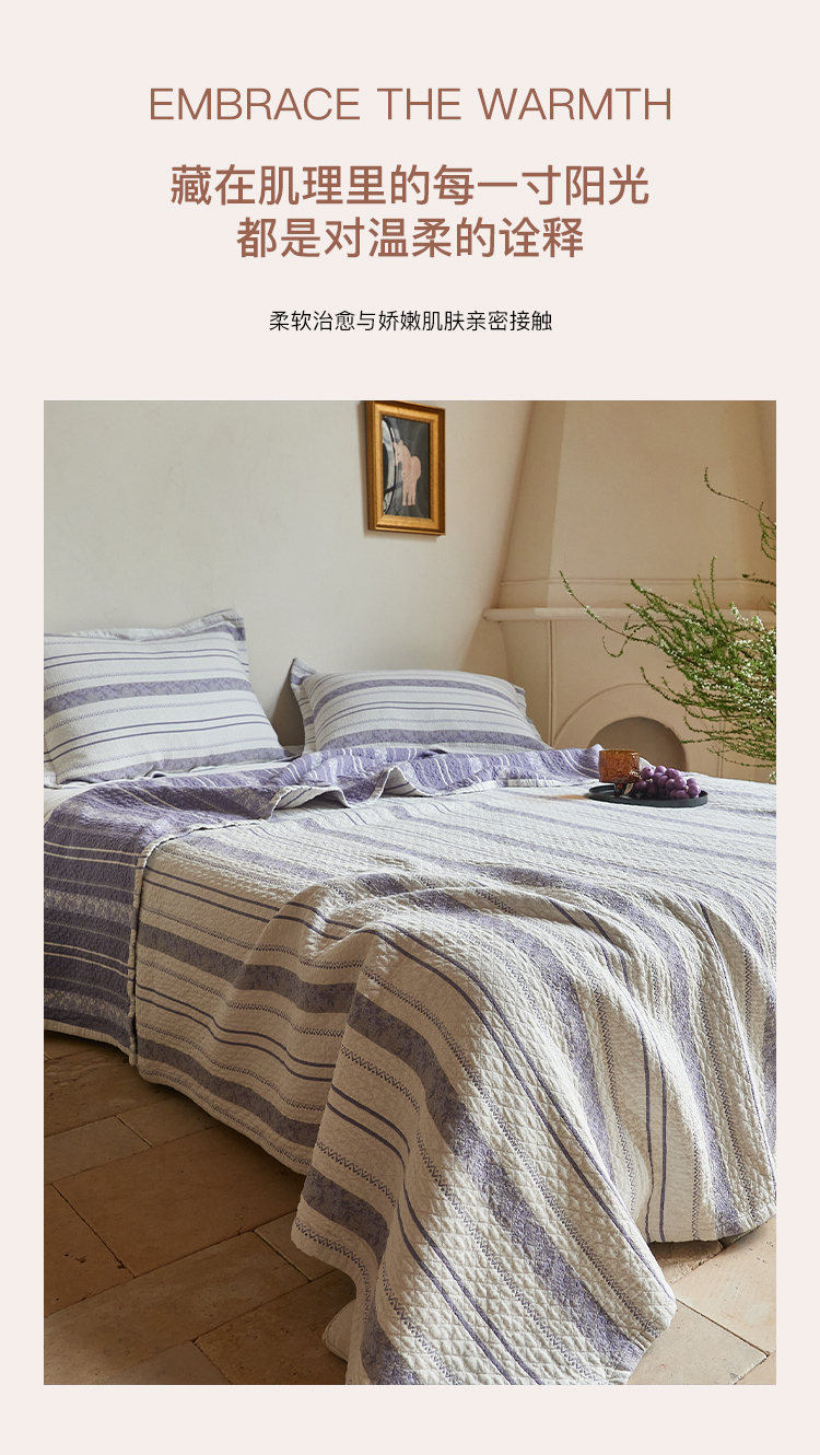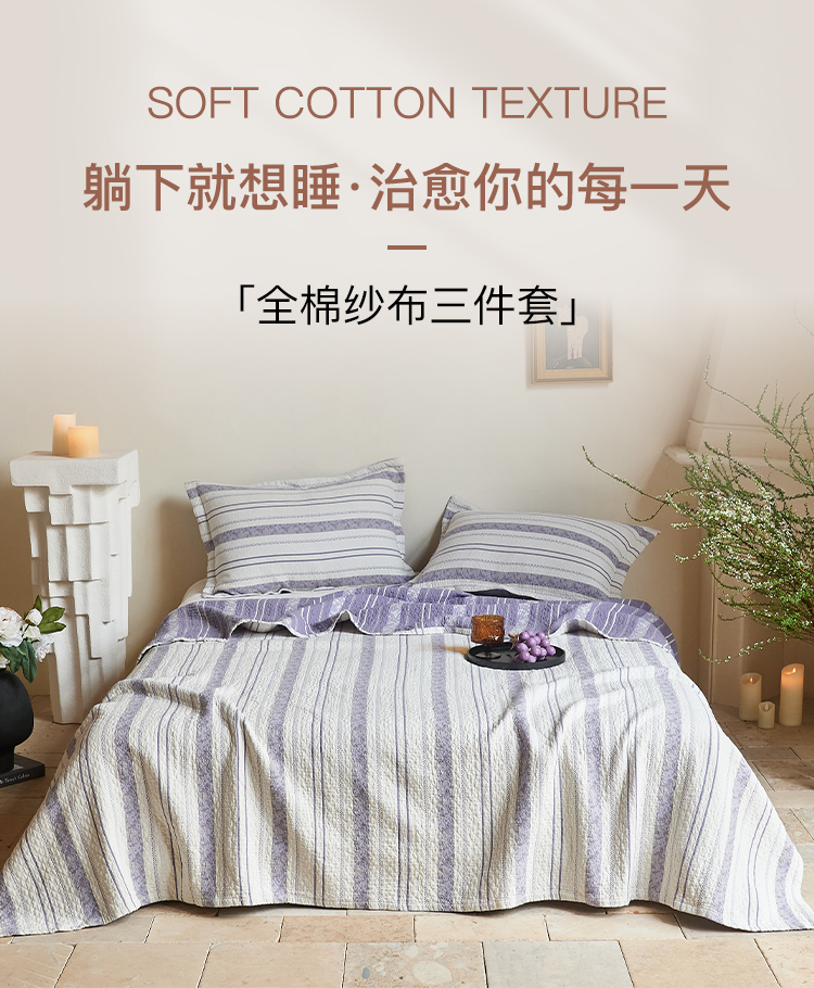 沐瑟家纺 2026新款床盖三件套 竖条花-紫