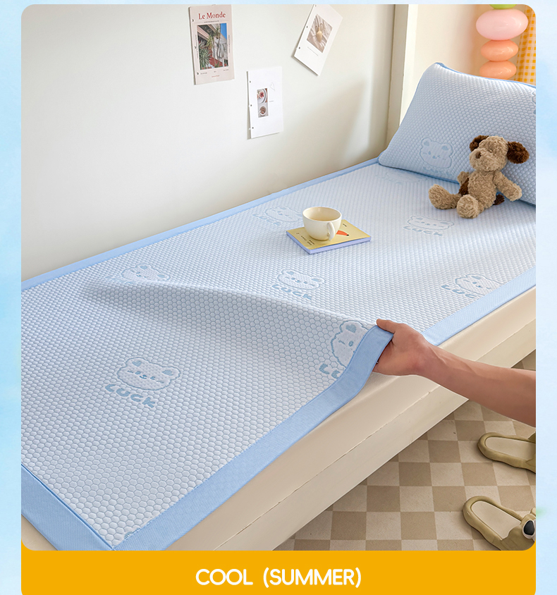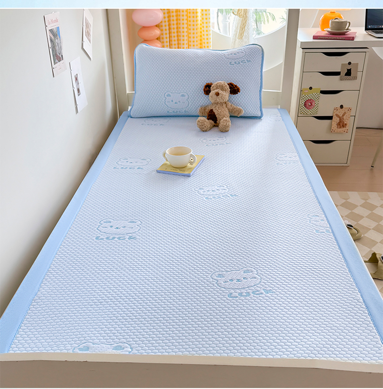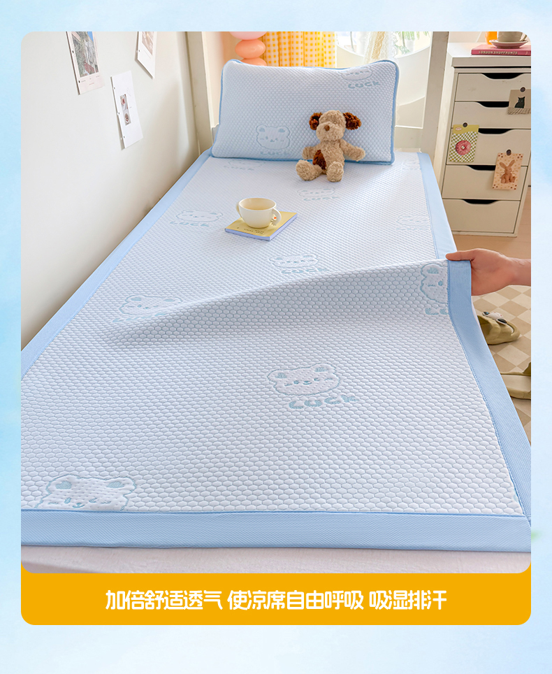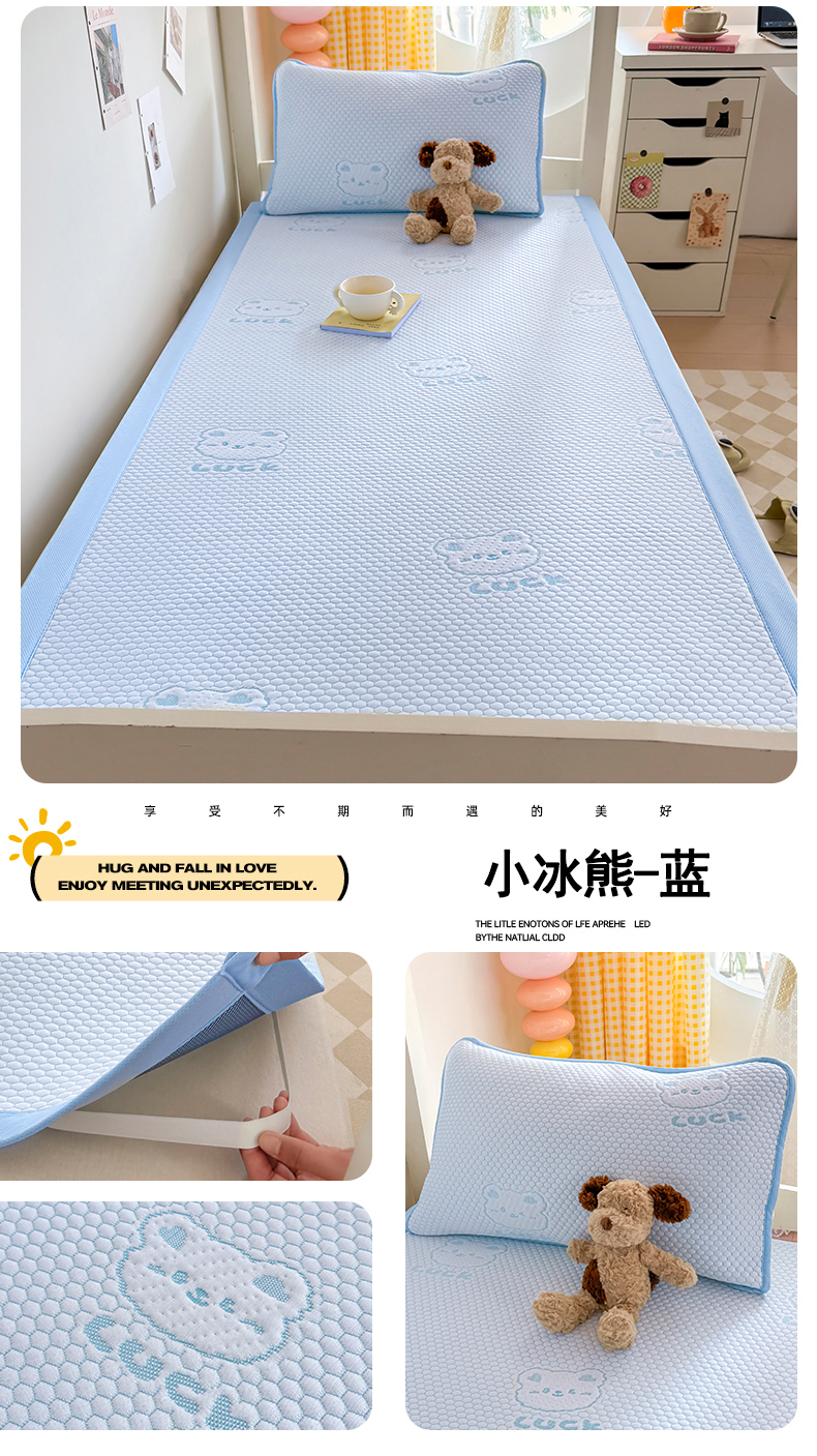 商品名称:奇丝雅 2026新款夏季A类冰豆豆凉席冰丝凉席家用冰丝席可机洗水洗单人学生宿舍上下铺寝室 小冰熊-蓝