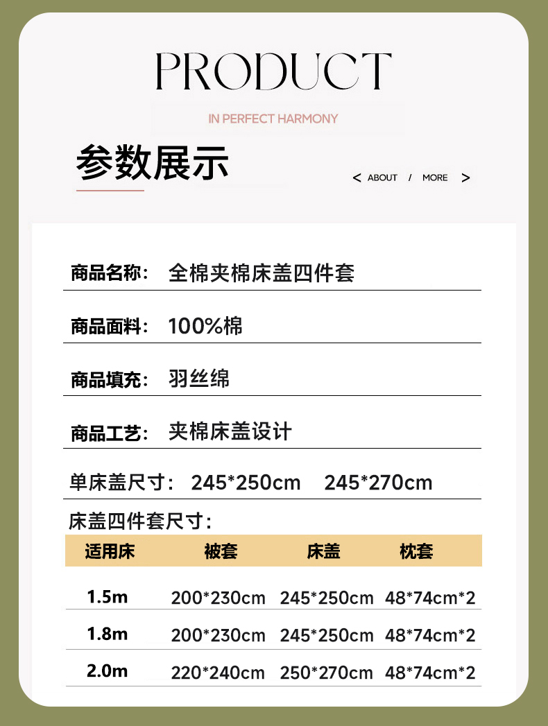 标准四件套(被套2.0✖2.3,床盖245✖250) | ¥155.00 |
