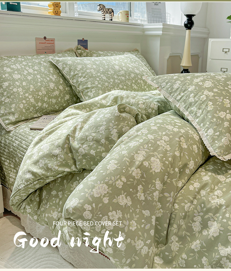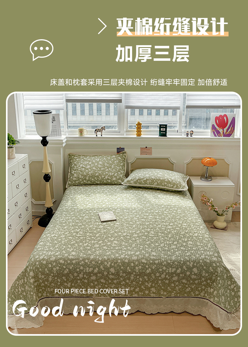 当前位置: 91家纺网 > 商品网购 > 床品套件 > 四件套 > 全棉普通四件套 > 简一 2026新款全棉床盖四件套春晓绿
