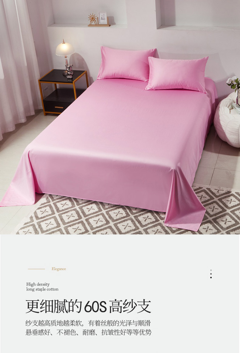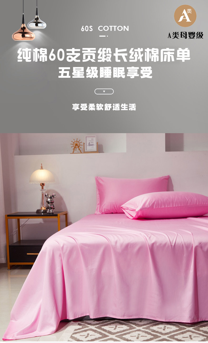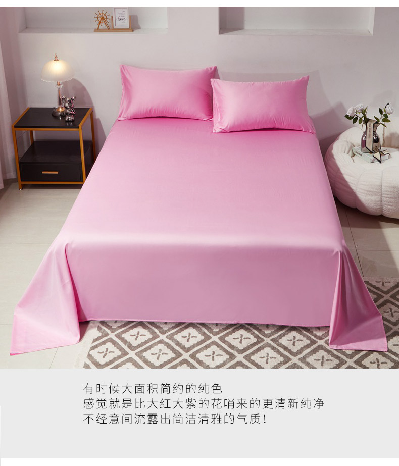 • 91家纺网 家纺一手货源 找家纺 晶缦家纺 2026新款全棉A类纯棉60支贡缎长绒棉纯色单床单单品床单床单单件 琳琅-粉红色