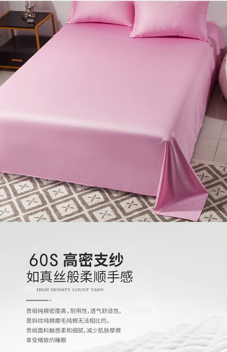 晶缦家纺 2026新款全棉A类纯棉60支贡缎长绒棉纯色单床单单品床单床单单件 琳琅-粉红色