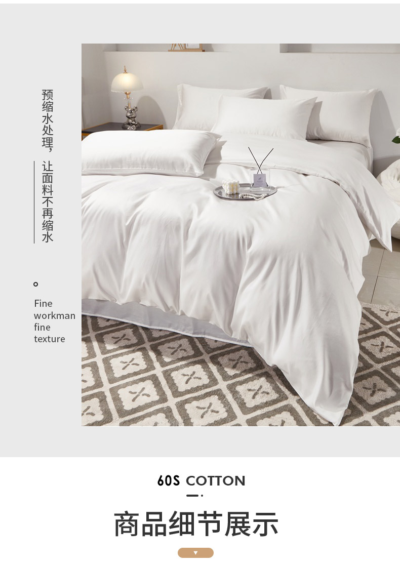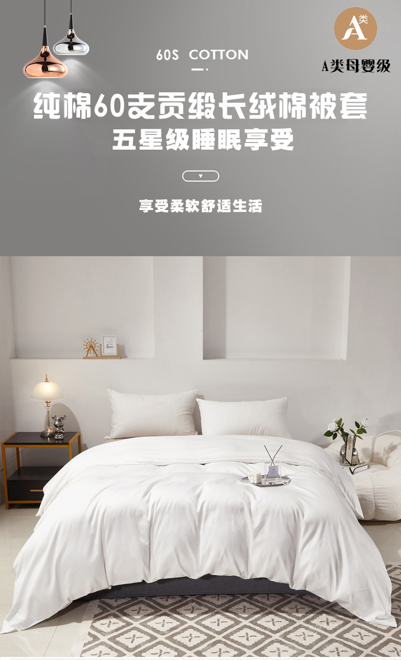 • 91家纺网 家纺一手货源 找家纺 晶缦家纺 2026新款全棉A类纯棉60支贡缎长绒棉纯色单被套单品被套被套单件 琳琅-本白色