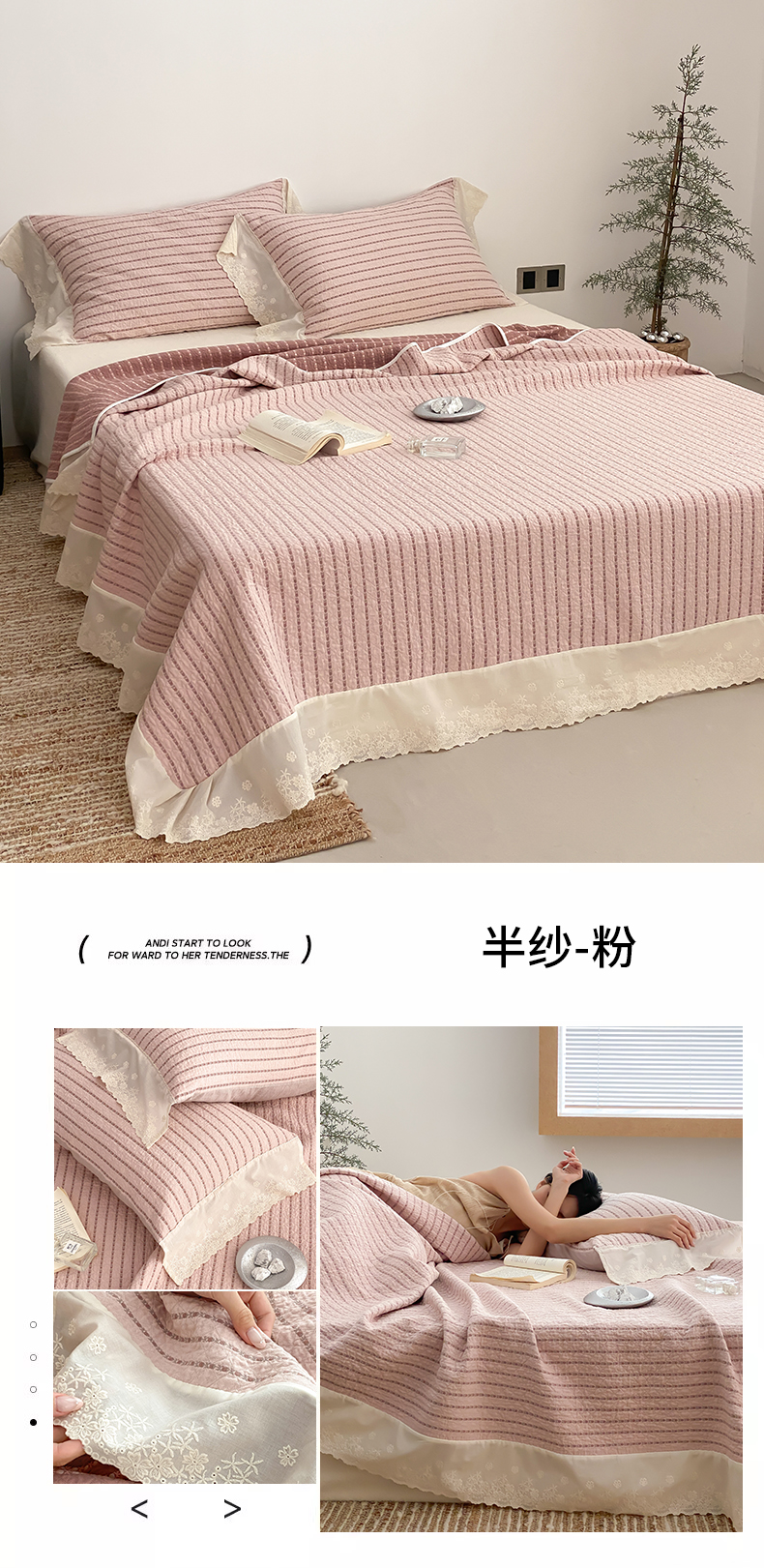 商品名称:麻依 2026新款全棉纯棉纱布床盖三件套四季款 半纱-粉