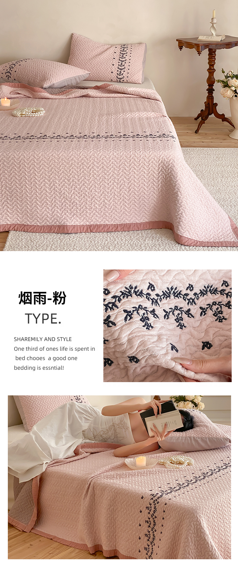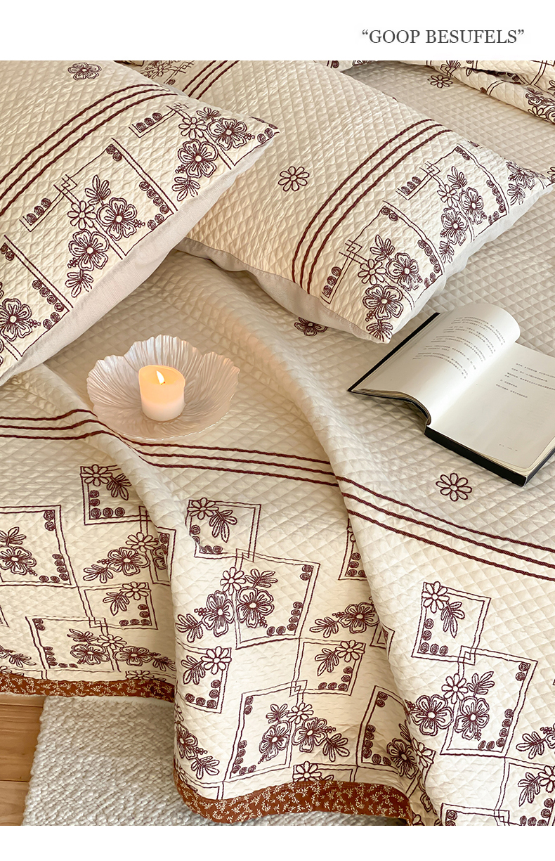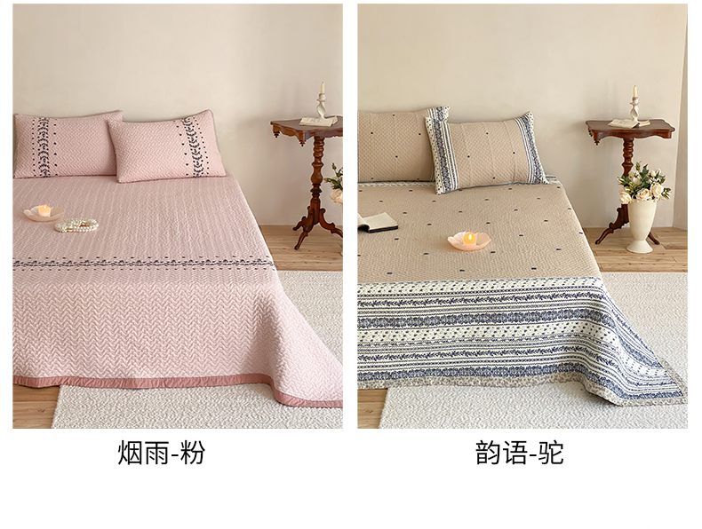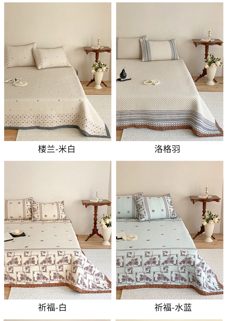 (总)麻依 2026新款韩国重工全棉纱布床盖床盖三件套,楼兰-粉,楼兰-米白,洛格羽,祈福-米白,祈福-水蓝,晴岚-灰咖,晴岚-米白,三叶草,小花排排,烟雨-粉,烟雨-灰咖,韵语-驼,组合图仅供展示-不可下单