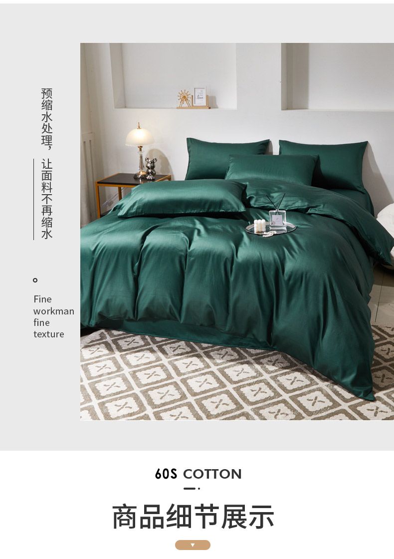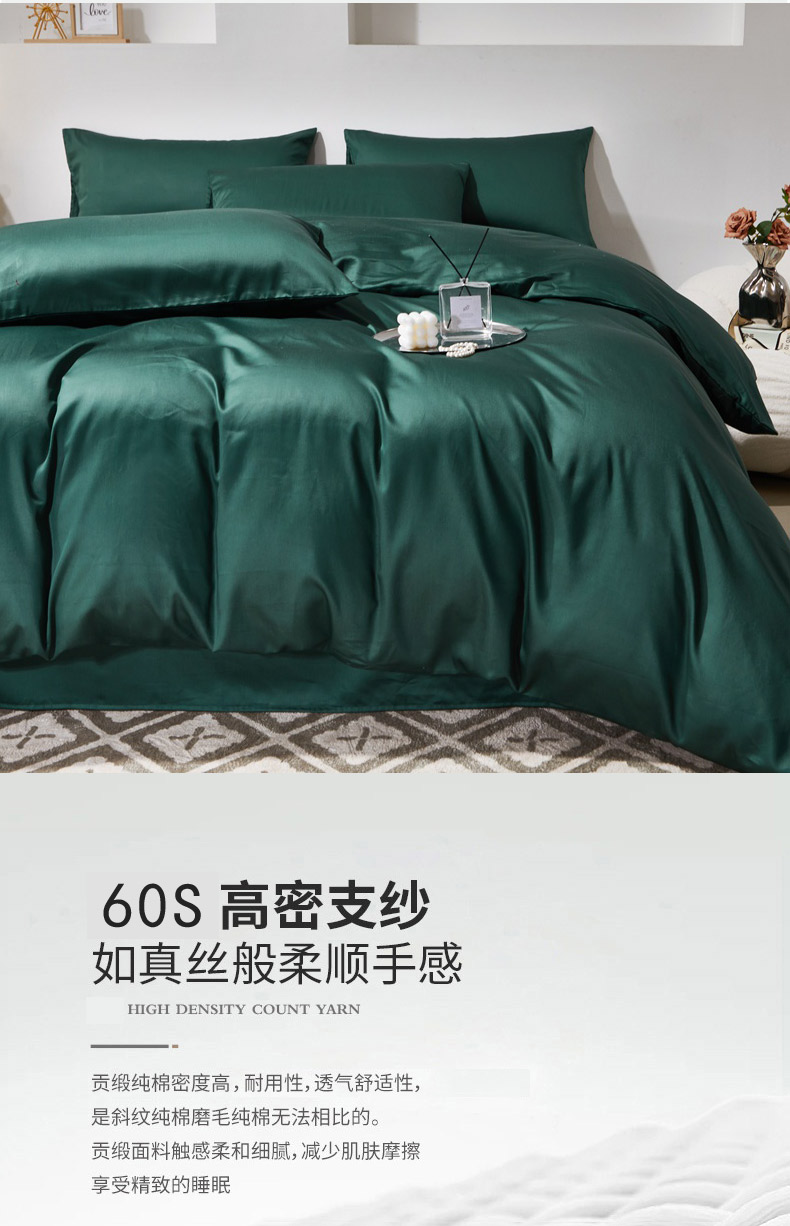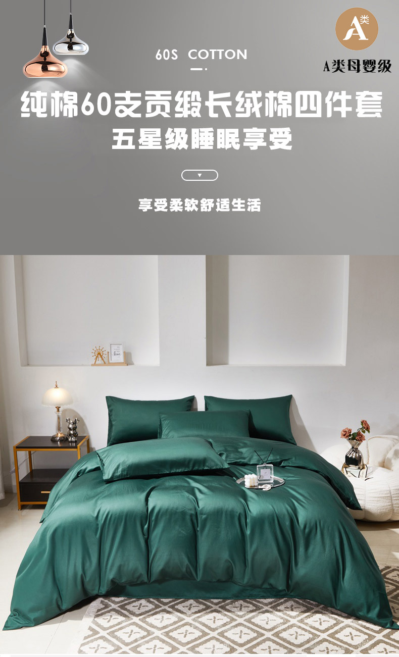 当前位置: 91家纺网 > 商品网购 > 床品套件 > 四件套 > 贡缎全棉四件套 > 晶缦家纺 2026新款全棉A类纯棉60支贡缎长绒棉纯色四件套 琳琅-墨绿色