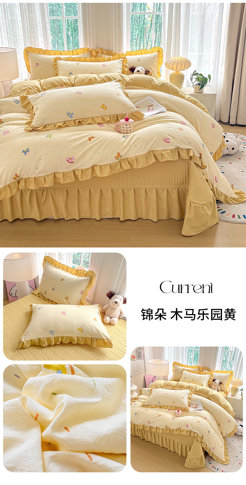当前位置: 91家纺网 > 商品网购 > 床品套件 > 四件套 > 其它四件套 > 铠畅 2026春夏新款 锦朵系列韩版水洗棉小清新古棉床盖四件套 锦朵 木马乐园黄