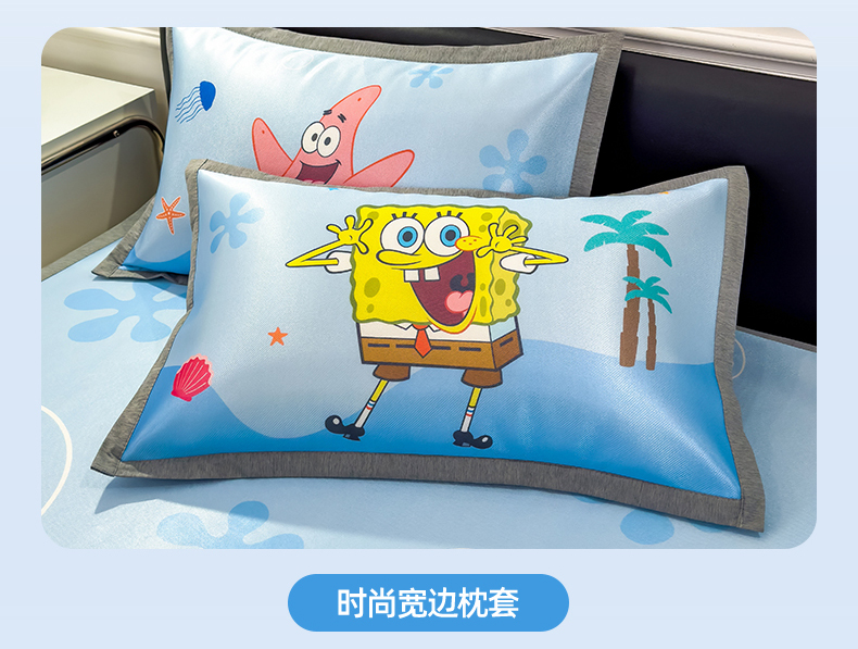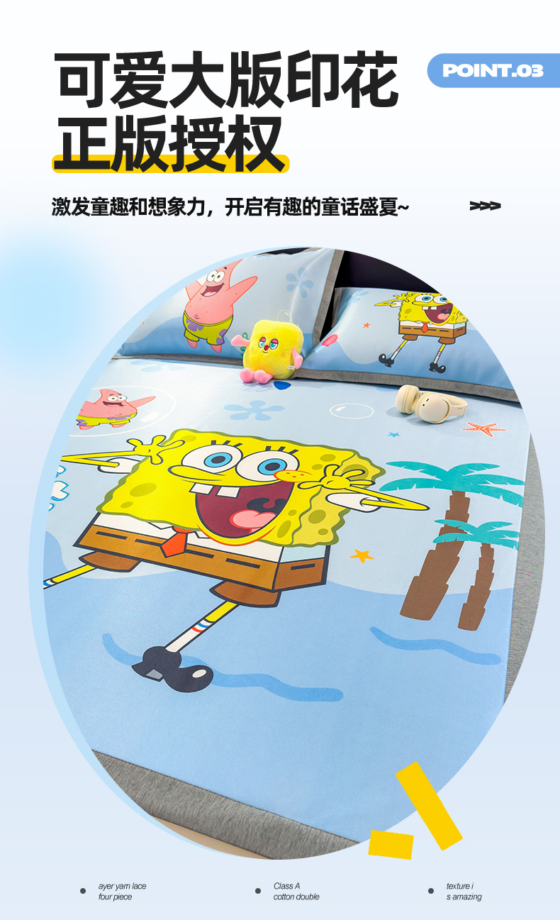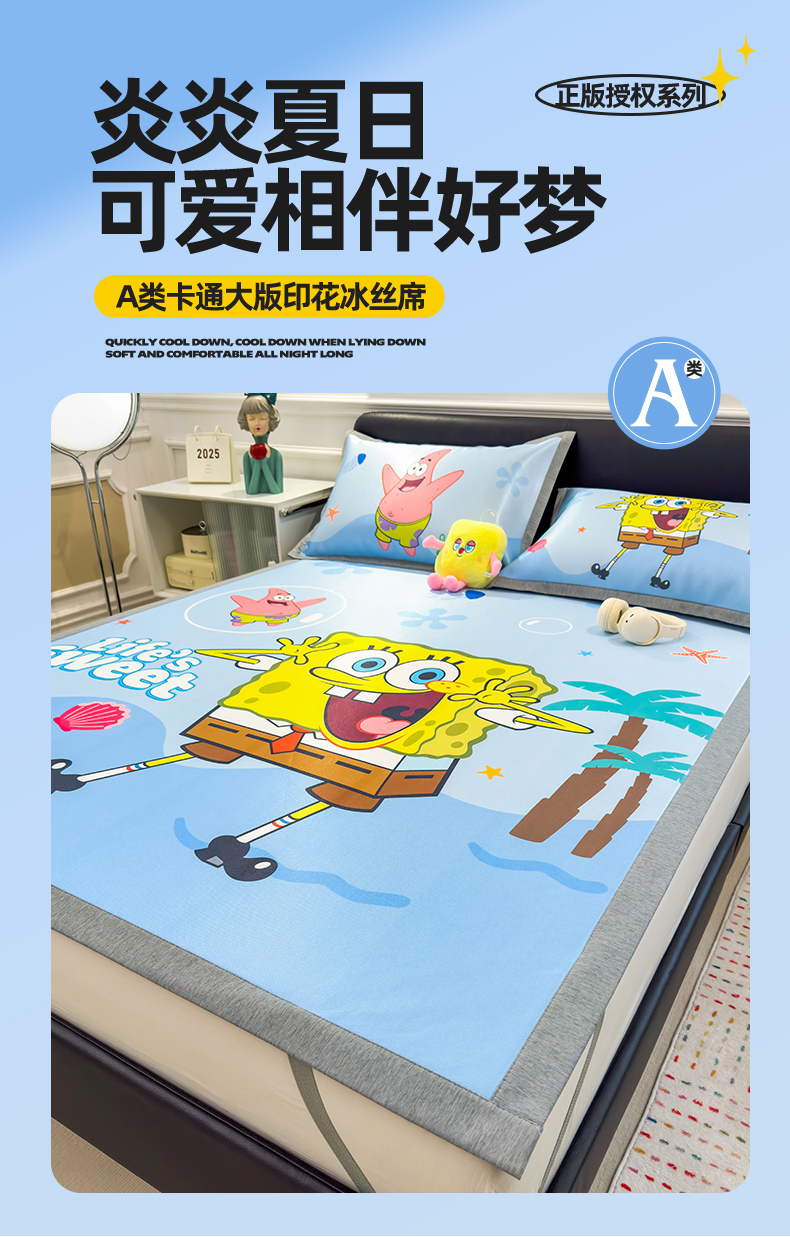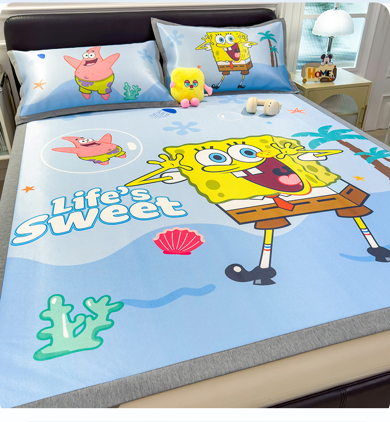 商品名称:兄弟坊 2026新款正版授权A类大版卡通烫光冰丝凉席冰丝席 海底海绵宝宝