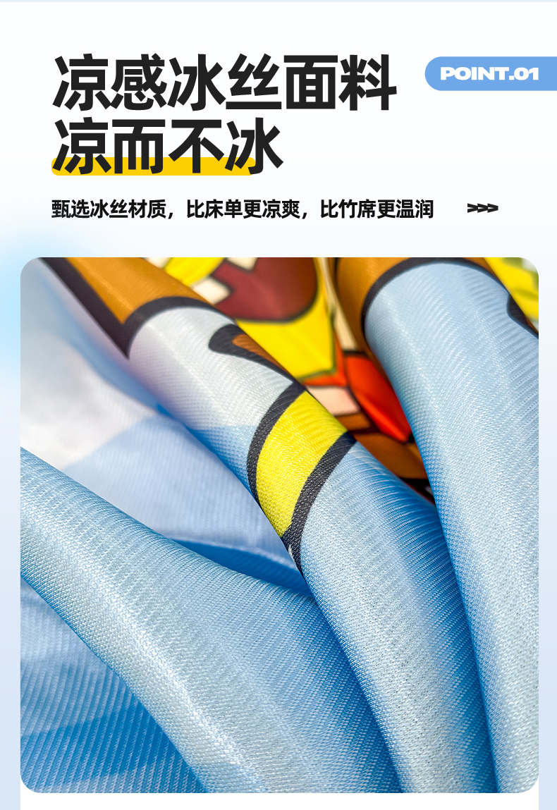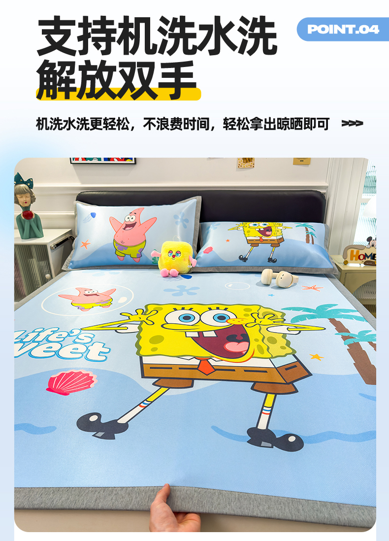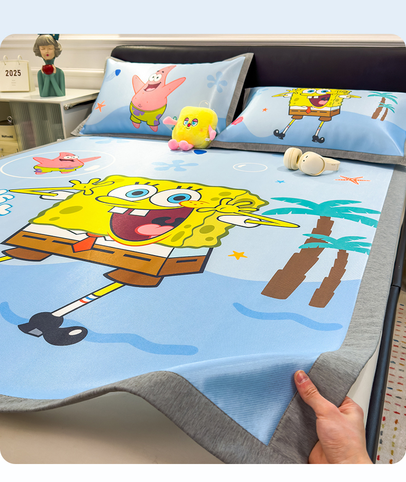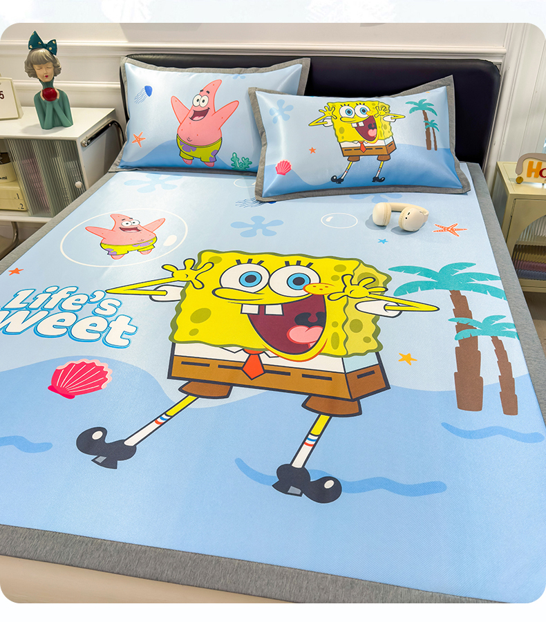 商品名称:兄弟坊 2026新款正版授权A类大版卡通烫光冰丝凉席冰丝席 海底海绵宝宝