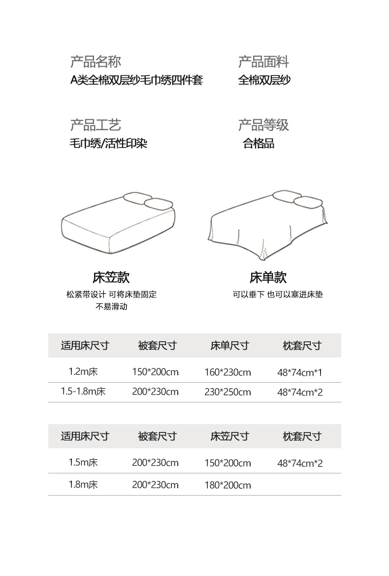 商品名称:麦田家纺 2026新款A类全棉双层纱毛巾绣四件套 沁凉