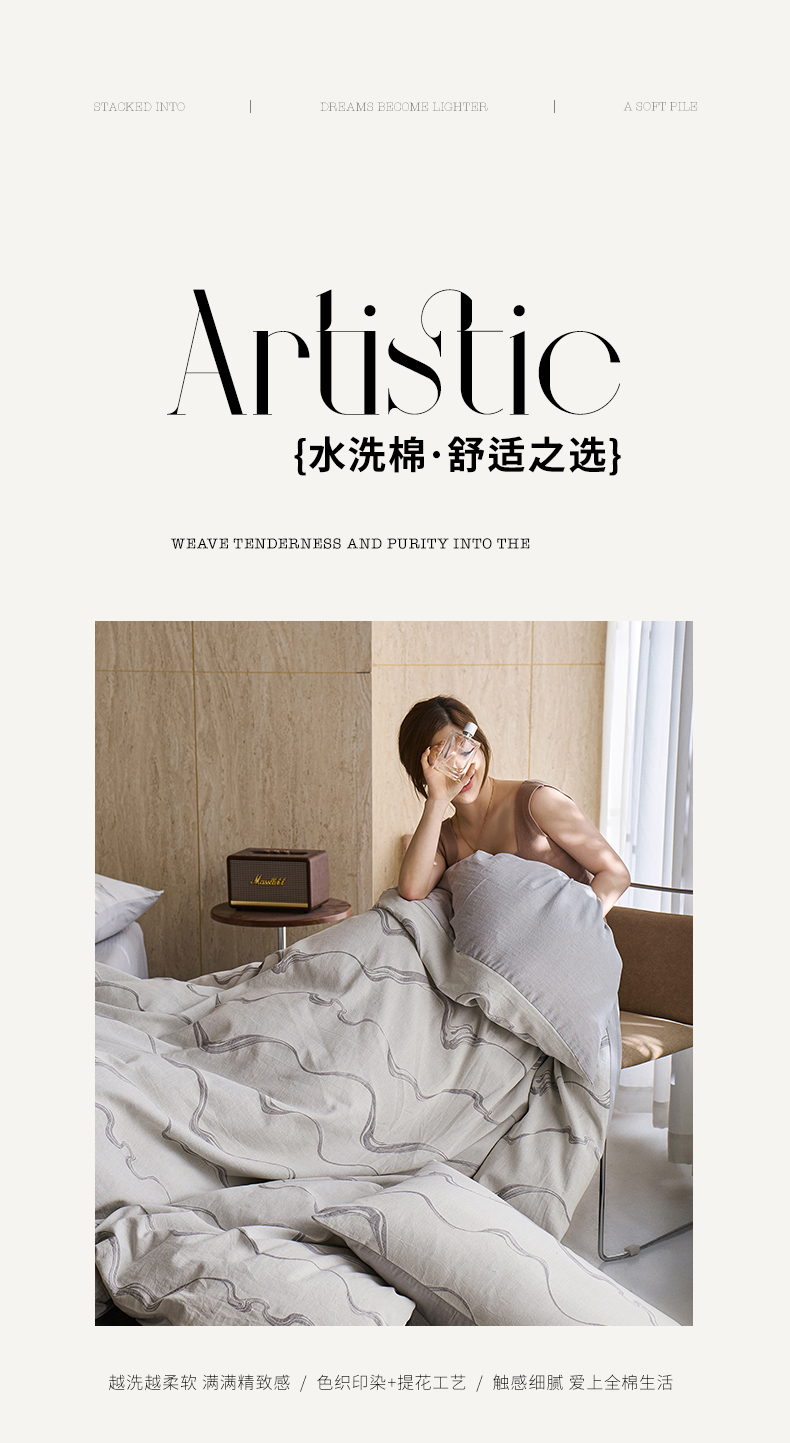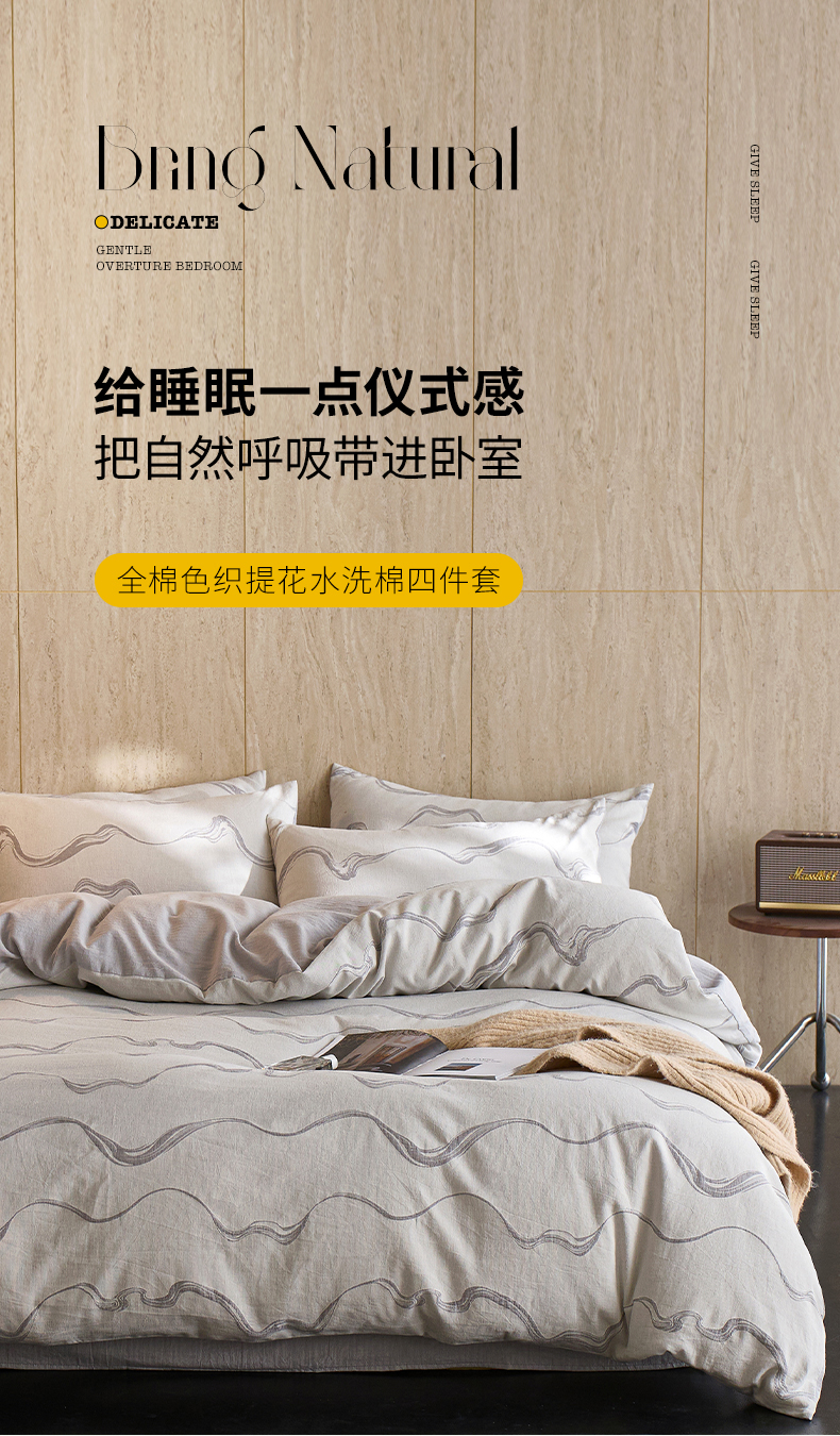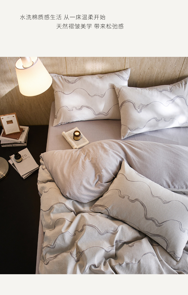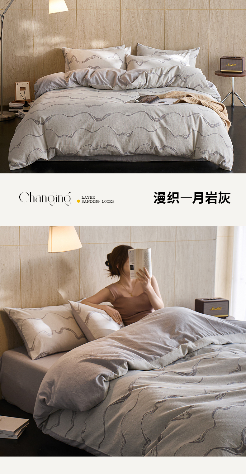 当前位置: 91家纺网 > 商品网购 > 床品套件 > 四件套 > 全棉普通四件套 > 安莱生活 2026新款全棉纯棉色织提花水洗棉四件套 漫织—月岩灰