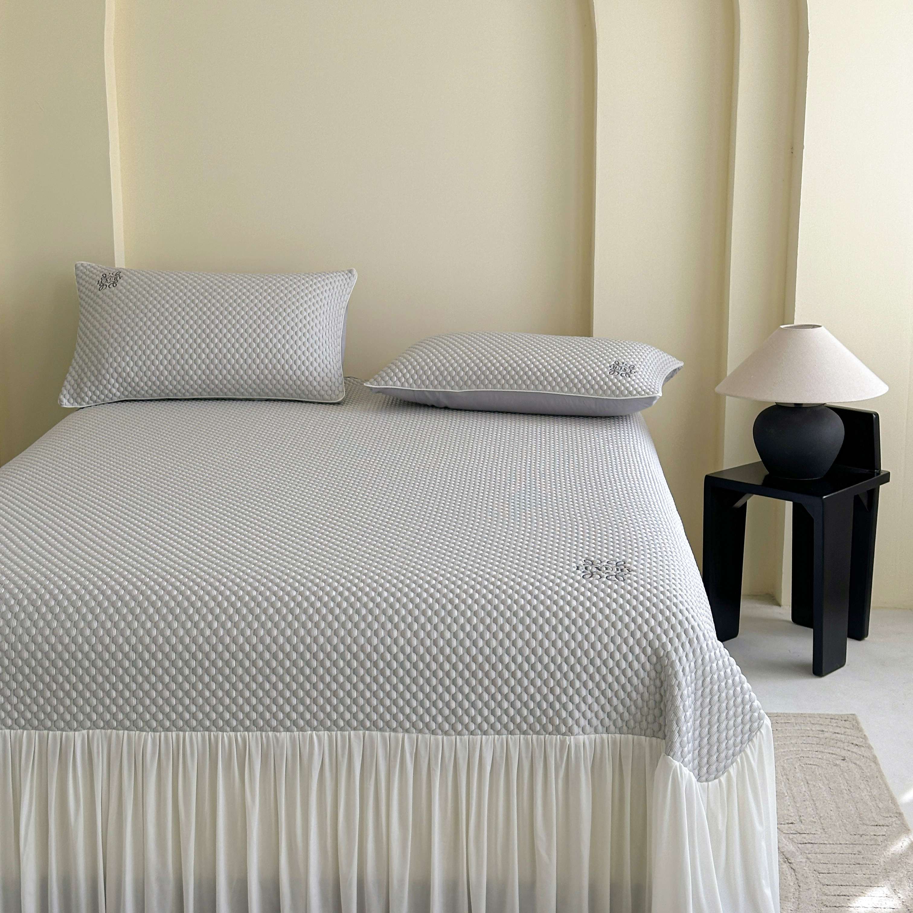 (总)禧禾 2025新款PE高分子A类泡小豆刺绣床裙冷感席三件套-兰蝶秘境,兰蝶秘境-茶绿,兰蝶秘境-浅灰,兰蝶秘境-水粉